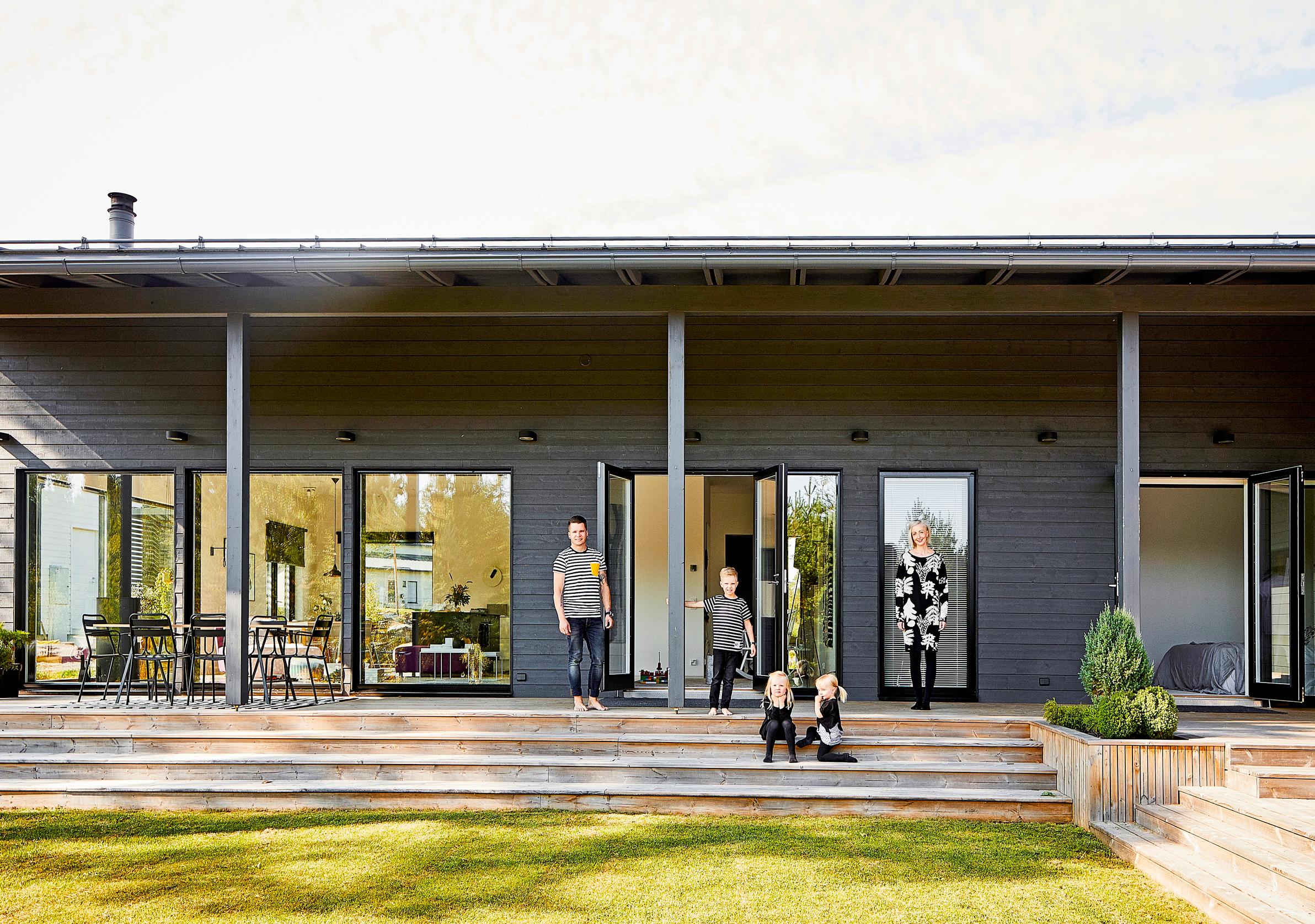 Kaisa Savolan ja Jukka Anttosen upea tummanharmaa omakotitalo nousi rauhalliselle omakotitaloalueelle Turun seudulle neljä vuotta sitten. Kävelymatkan päässä kotoa ovat koulut ja päiväkodit. Turun keskustaankin on vain 20 minuutin ajomatka. Talo sulautuu kauniisti ympäristöönsä. Kaikki ratkaisut on suunniteltu tarkasti.