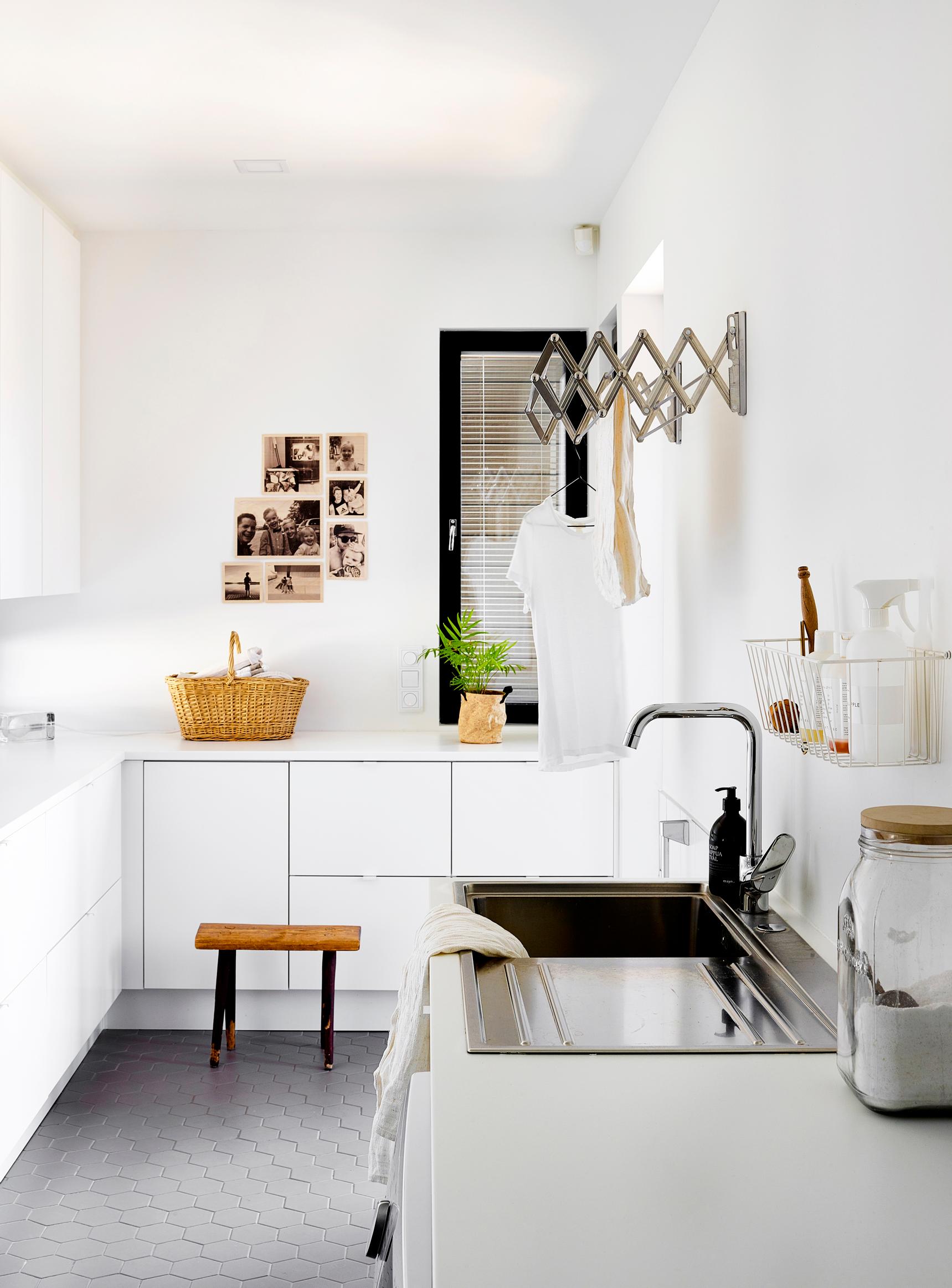 Yksi onnistuneimmista ratkaisuista on kodinhoitohuone, jossa on tilat niin vaatehuollolle kuin -säilytykselle.