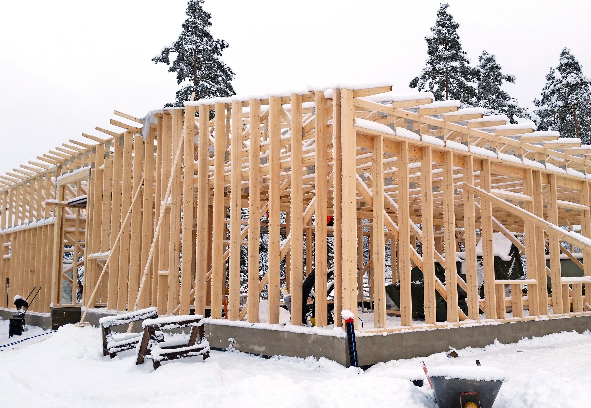 Rakennusarkkitehti piirsi talon Kaisan ja Jukan luonnosten pohjalta. Perheen työnjako rakennusprojektin aikana oli yksinkertainen: Jukka suunnitteli ja rakensi, Kaisa hoiti perheen. Aikataulu tosin kiristyi alkuperäisestä, kun perheen edellinen koti myytiin salamavauhtia.