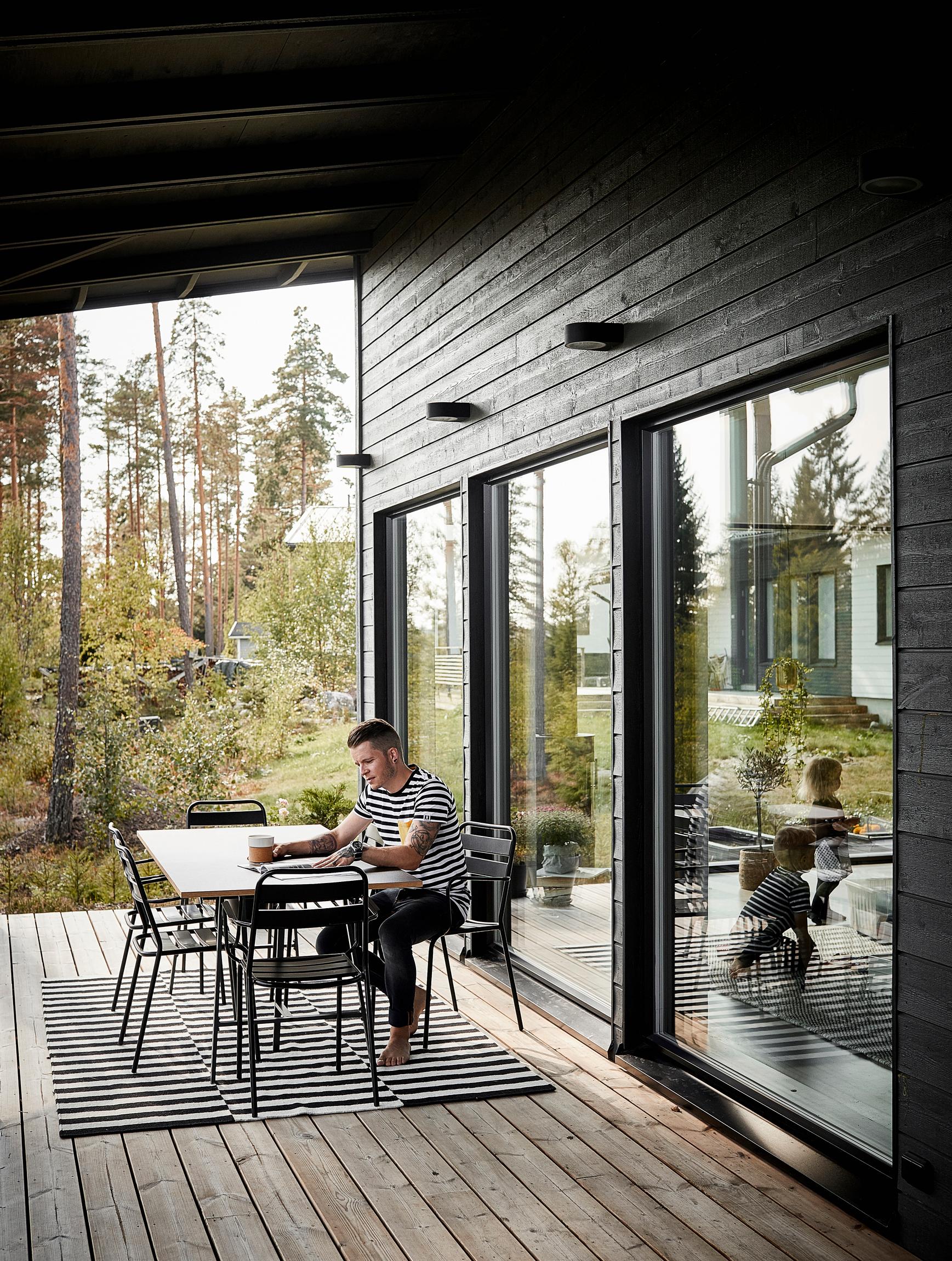 Kaisa Savola ja Jukka Anttonen suunnittelivat perheelleen persoonallisen omakotitalon Turun seudulle. Pihapiirissä olevassa erillisessä saunarakennuksessa nautitaan löylyistä päivittäin.