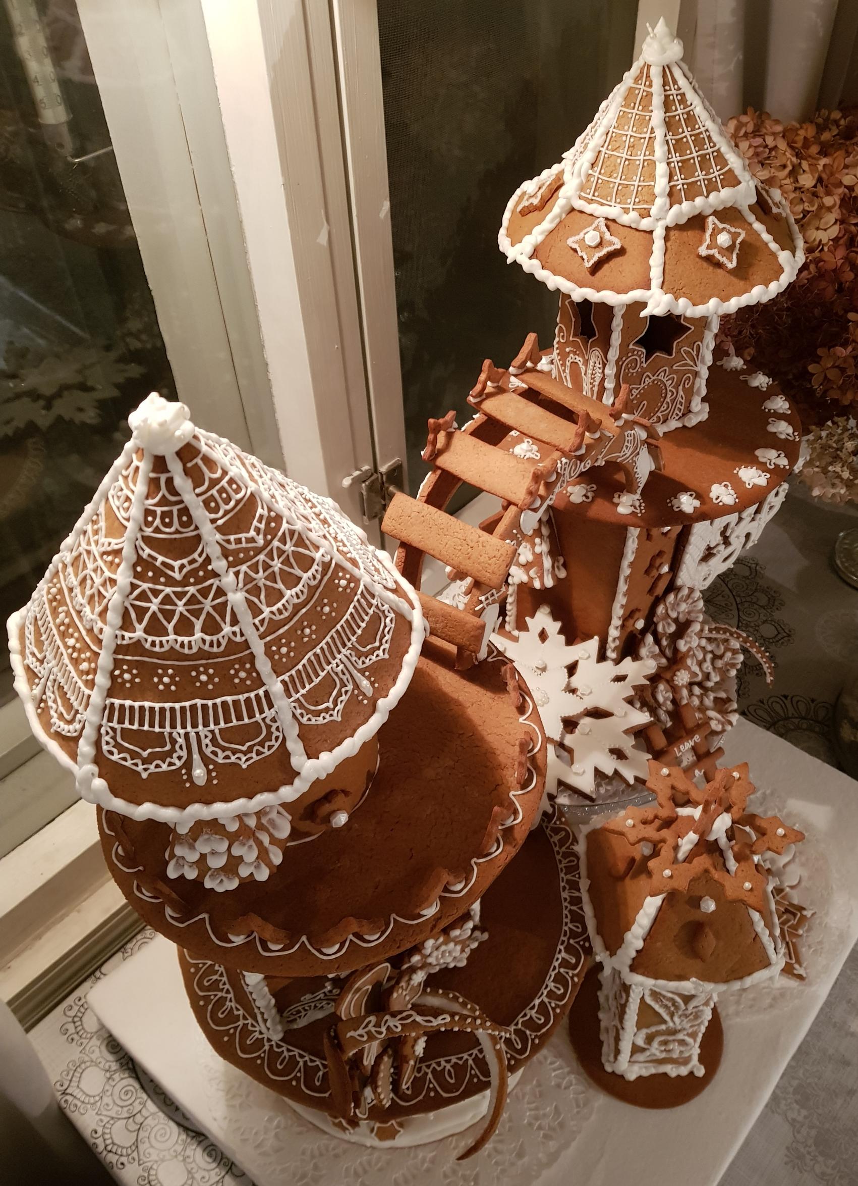 ”Innostuin muutama vuosi sitten piparirakentelusta, ja nyt on muodostunut tavaksi tehdä joka joulu jotain. Haastan mielelläni itseäni kaikessa tekemisessä, ja joka kerta pitää olla jotain uutta. Itseoppineelle kotileipurille tämä toki on helppoa, pikeeriinkin tutustuin vasta pari vuotta sitten.