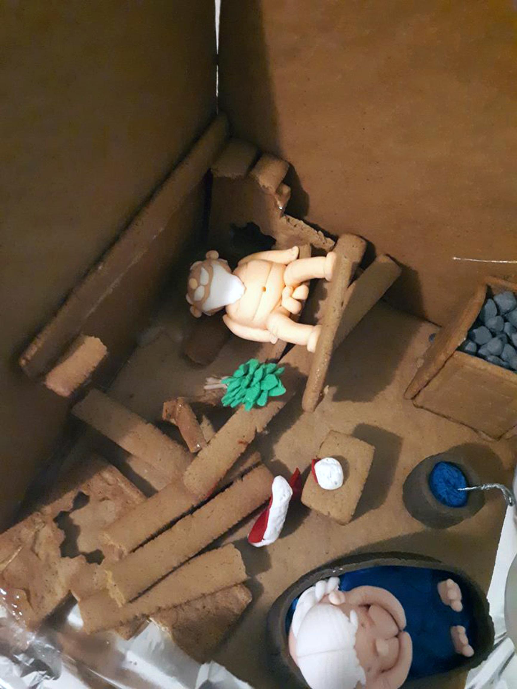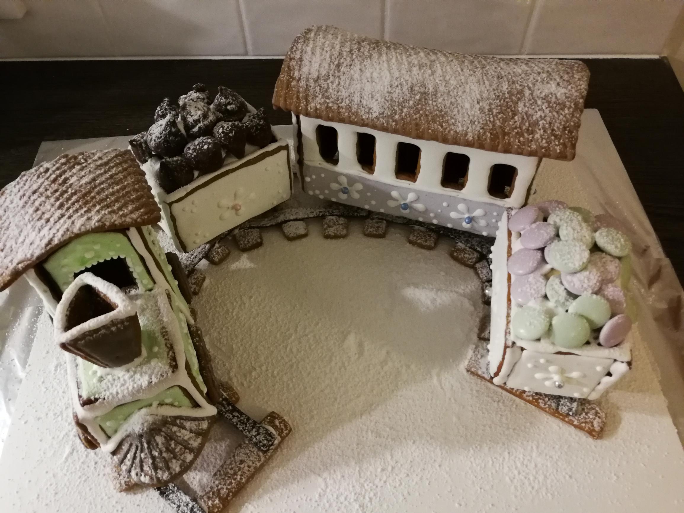 Olemme aiemmin tehneet erilaisia taloja, kuusia, kirkkoja ja muumitalon. Piparissa on ihanaa haastetta, ja talojen kasaaminen on jännittävää. Parasta on koristelu ja pihojen luominen, koska siinä saa heittää luovuuden ihan uudelle tasolle. Teemme kaiken aina syötäväksi, mikä tuo peliin mukavaa haastetta mielikuvitukselle. Olemme tehneet esimerkiksi halkopinoja toukkalakuista, lumilyhdyn Mariannerakeista ja niin edelleen."