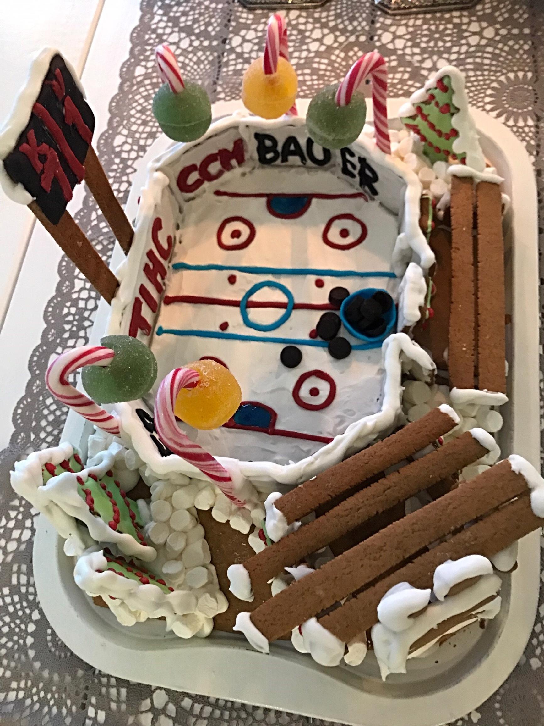 ”Perheessämme harrastetaan aktiivisti jääkiekkoa: 7- ja 8-vuotiaat poikani pelaavat ja heidän isä valmentaa. Itsekin olen aktiivisesti mukana harrastuksessa. Halusin ilahduttaa pikkumiehiä, ja idea piparisesta kaukalosta syntyi hetken mielijohteesta. En yleensäkään käytä aikaa suunnitteluun pitkiä aikoja, vaan tartun nopeasti tuumasta toimeen. Jompikumpi pojista taisi nakata muutamaa päivää aiemmin, että ’tee vaikka kaukalo’. Tämä oli ensimmäinen kerta, kun poikkesin perinteisestä piparitalon rakentamisesta.
