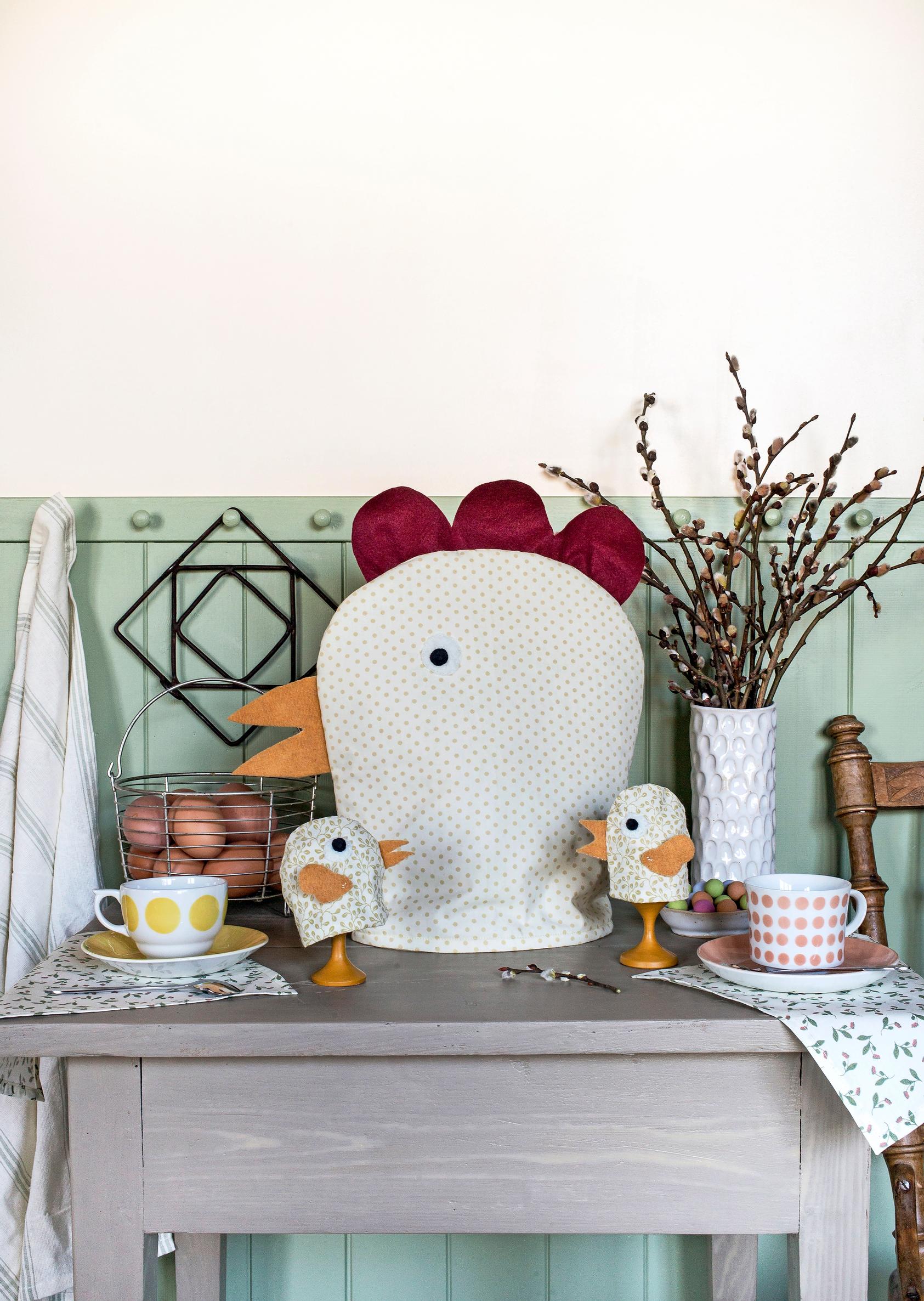 Ompele hauska kana pannumyssyksi ja pikkutipuset munanlämmittimiksi – nappaa ohje!