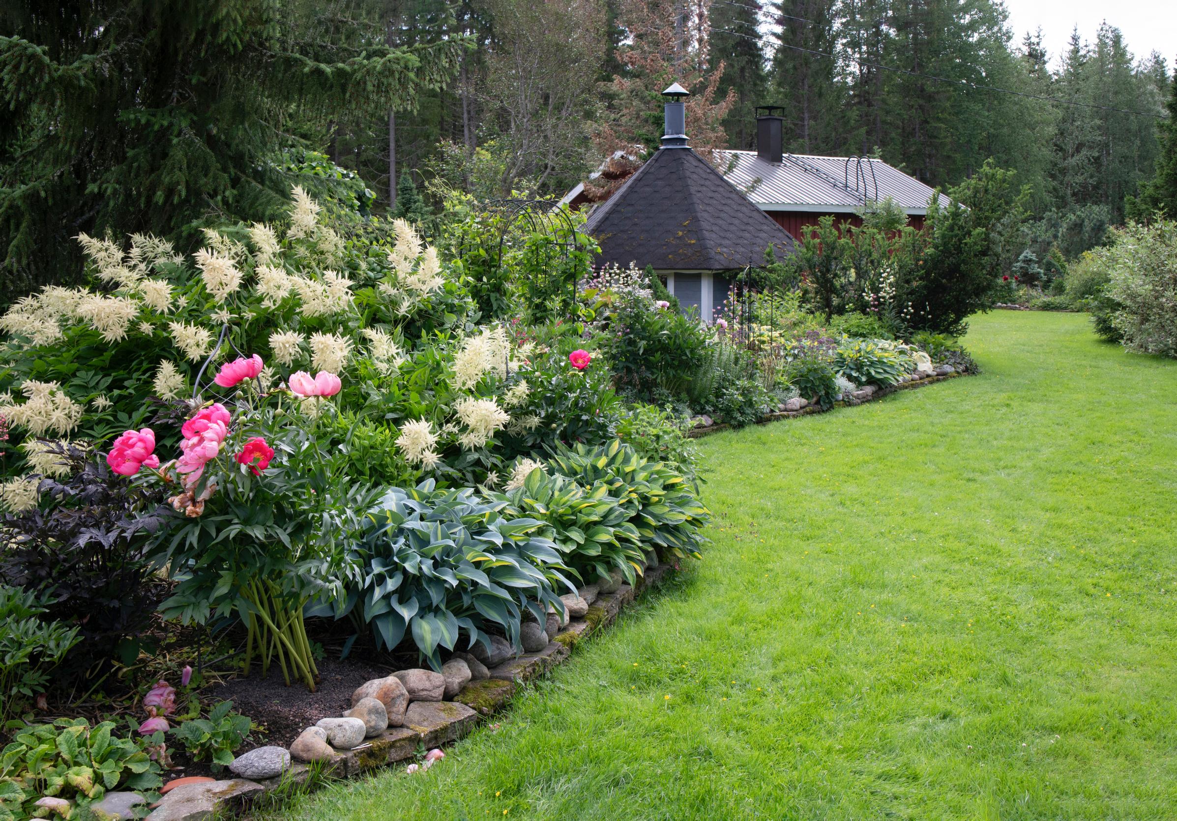 Puutarha on muotoutunut vähitellen 30 vuoden aikana, ja perusasiat ovat löytäneet paikkansa. Olen tyytyväinen esimerkiksi kasviryhmien muotoihin. Kanttaamaan en ole oppinut, mutta reunakivet pitävät penkkien linjat kohdillaan ja helpottavat hoitoa. Muutostarpeita tulee oikeastaan vain silloin, kun valo-olosuhteet muuttuvat puiden kasvamisen tai kaatamisen myötä. Työläintä on ehdottomasti vuohenputken hävitys, mutta siitä saan syyttää vain itseäni. Kaikki kasvit kun olen itse tuonut tälle paikalle enkä aikoinaan osannut tarttua hävityshommaan tarpeeksi tomerasti. Myös muun muassa vuohenkellon ja mukulaleinikin kasvua rajoitan.