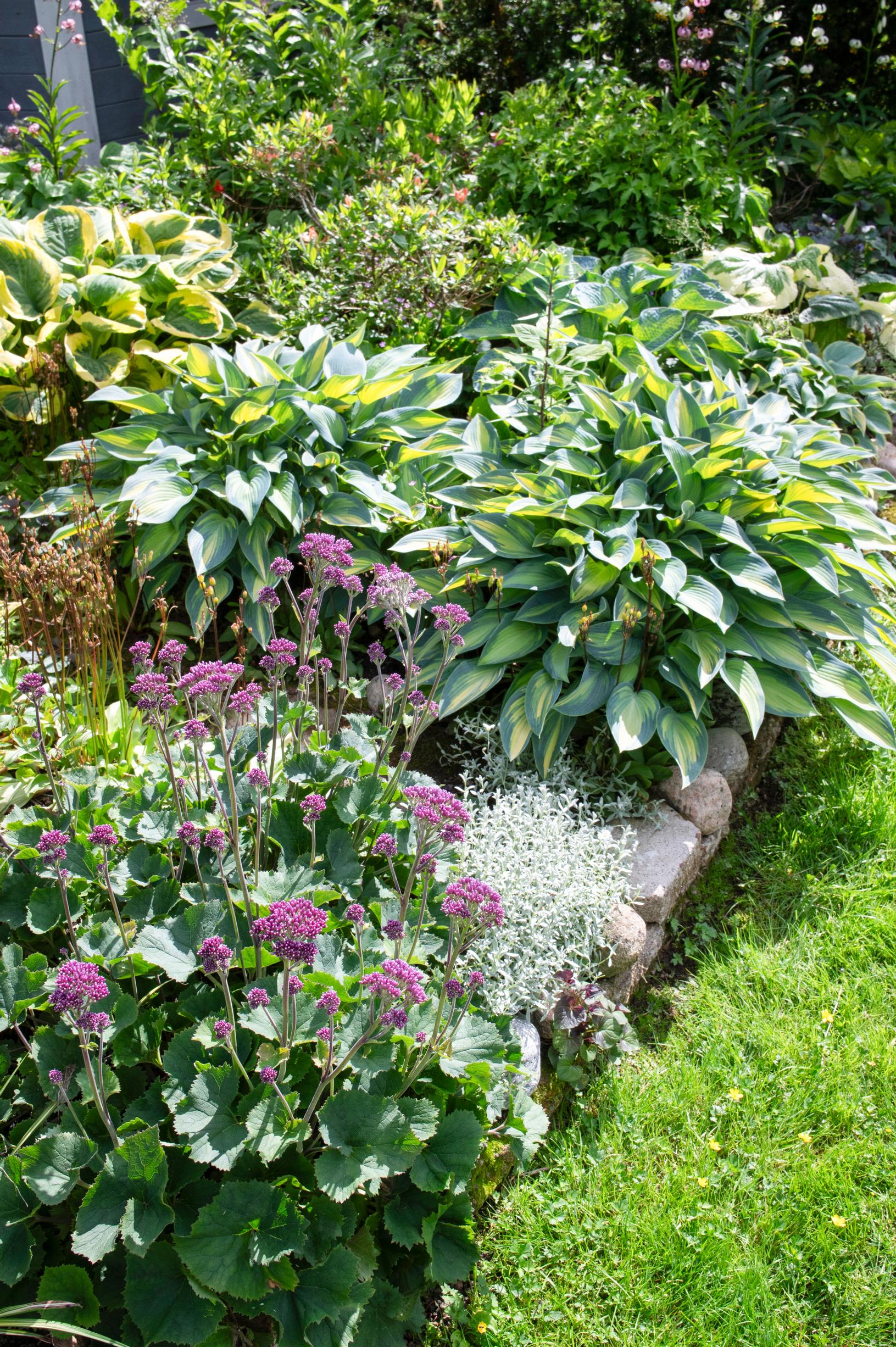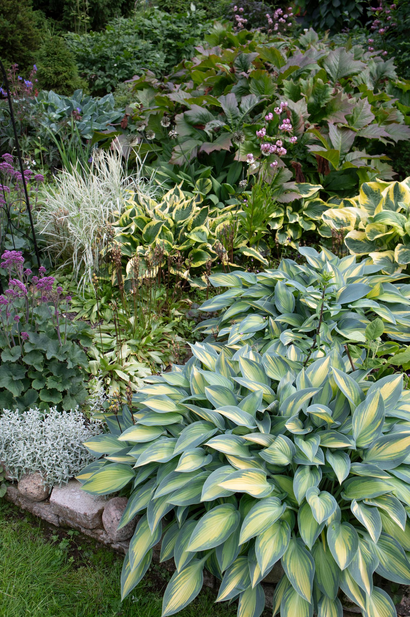 Lisää koko kesäksi väriä kirjava- ja värikäslehtisillä perennoilla, kuten rotkolemmikkien, kuunliljojen, kimikkien ja keijunkukkien lajikkeilla. Muista myös värikkäät puuvartiset, kuten purppuraheisiangervo sekä hopeaan ja siniseen taittuvat havut.