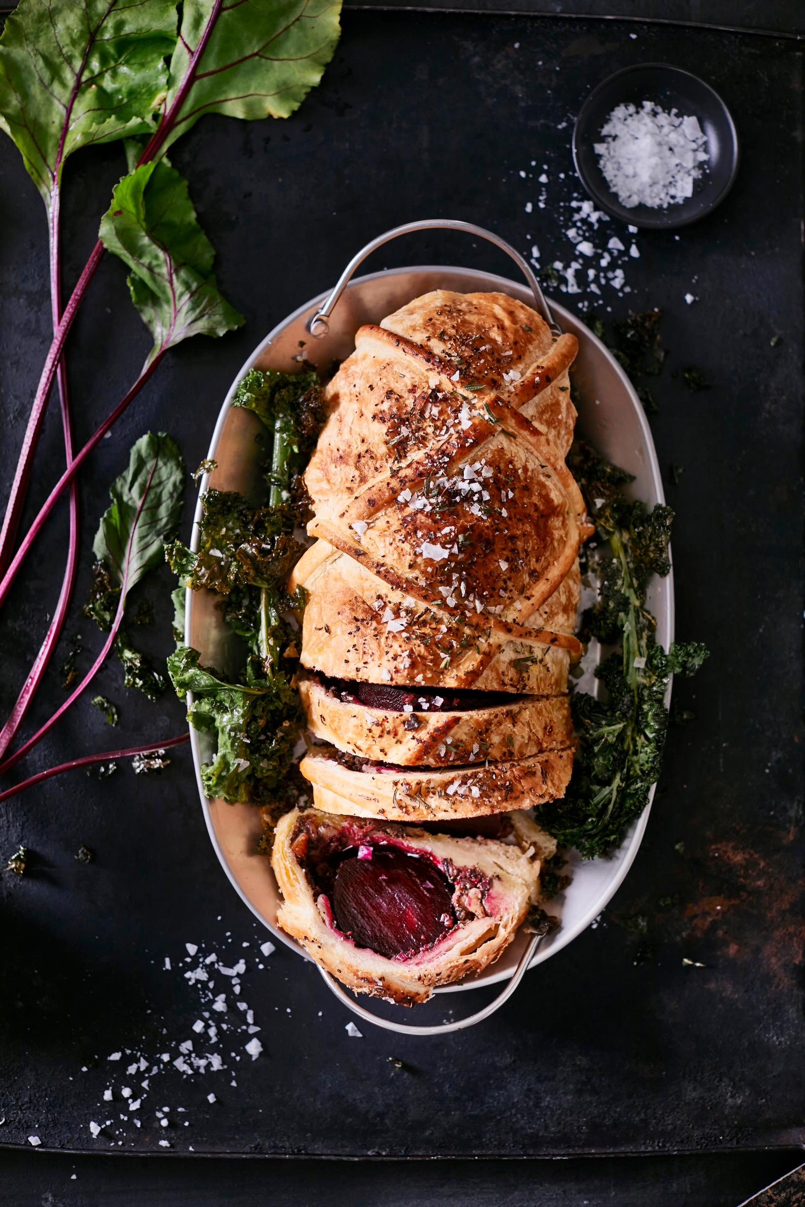 Wellingtonin pihvi valmistetaan tänä jouluna punajuuresta. Paahda punajuuret ja kiedo ne herkullisen sienitäytteen kanssa lehtitaikinan sisään. Punajuuriwellington sopii vegaaneille, mutta maistuu myös kaikkiruokaisille. Punajuuriwellingtonin ohjeen pääset lukemaan täältä.