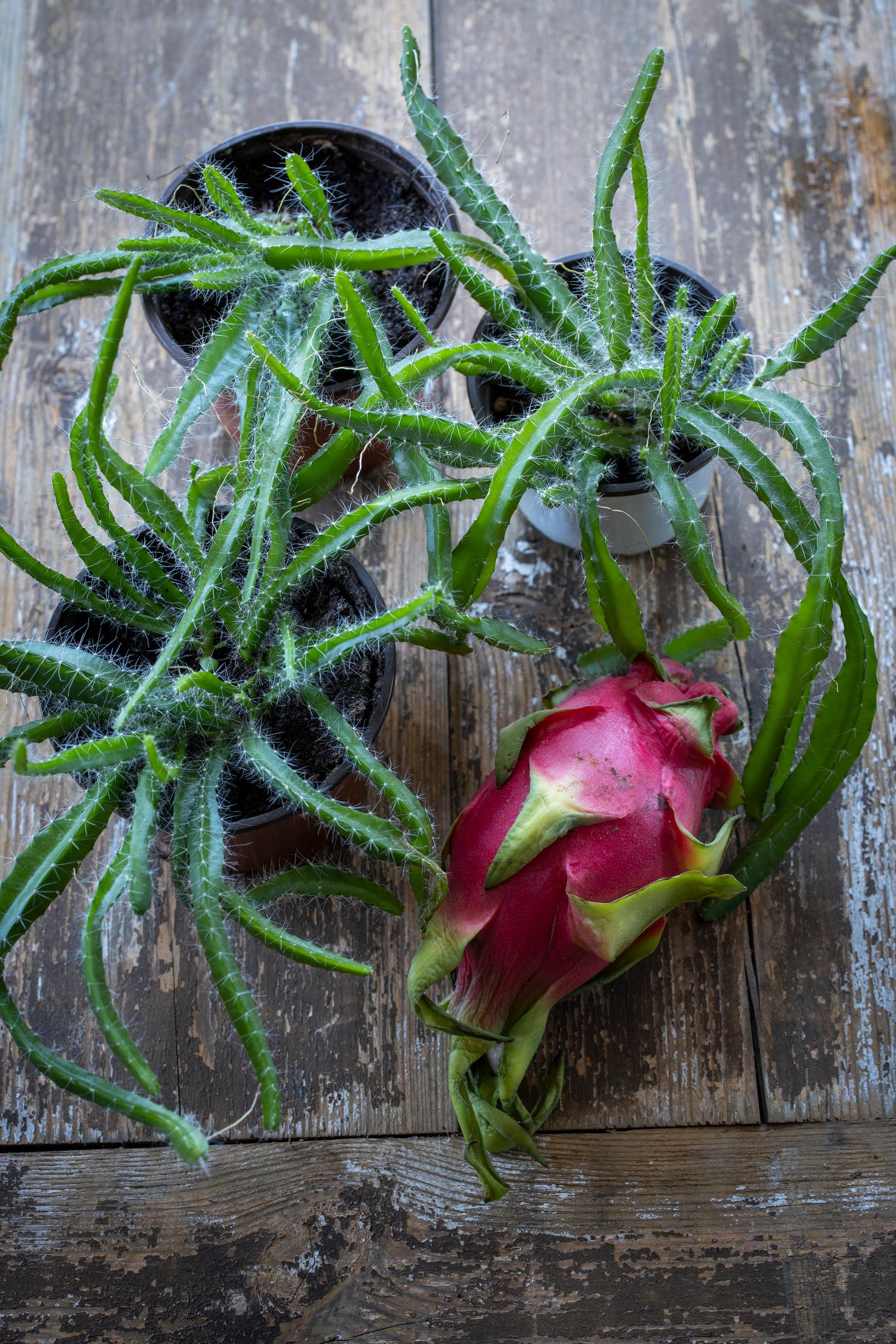 Pitaijakaktus on helppohoitoinen ja rentokasvuinen mehikasvi, joka kasvaa nopeasti. Kuvan kasvit ovat alle parivuotiaita.