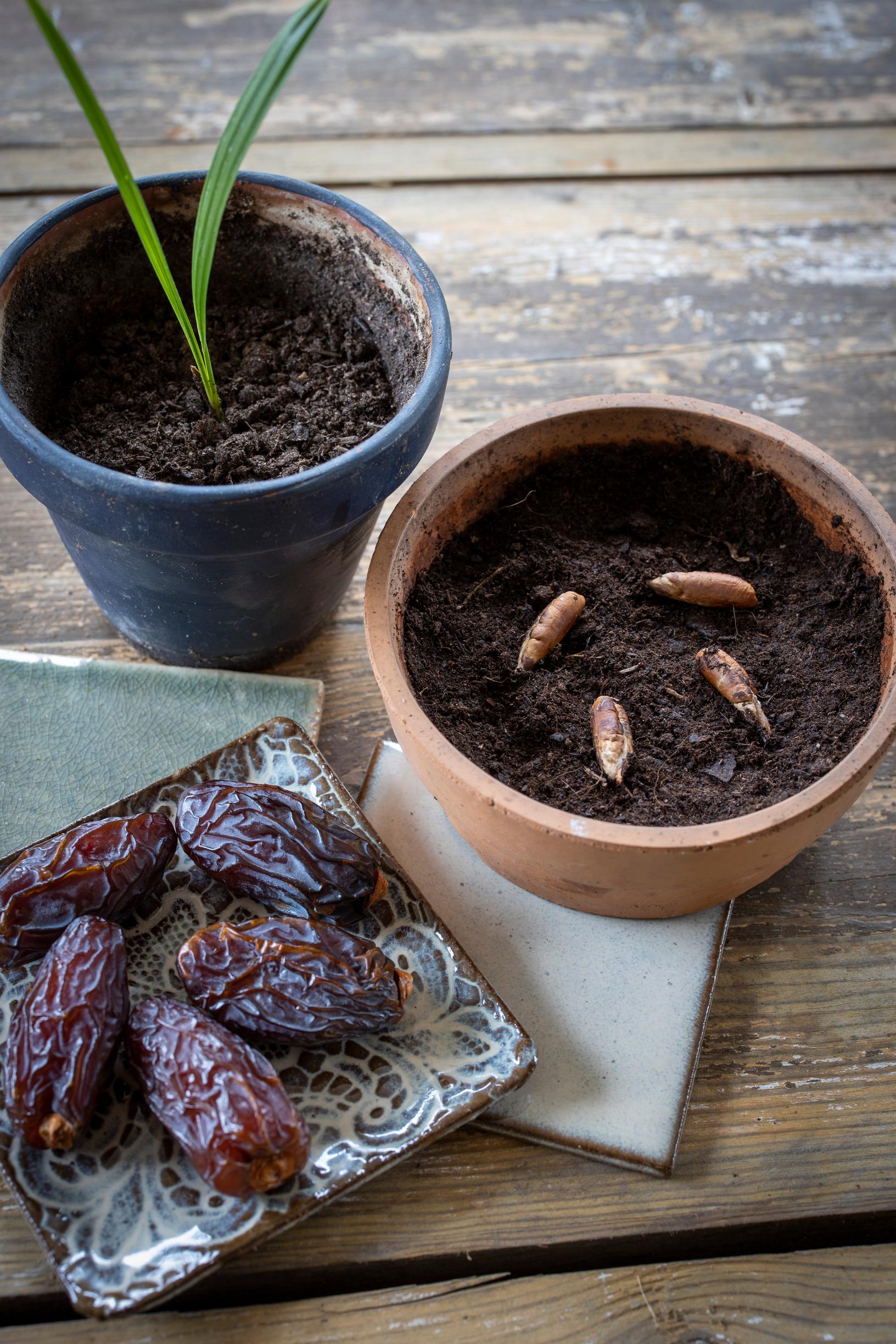 Liota taatelin siemeniä pari päivää vedessä ennen kylvöä. Taimet kasvavat hitaasti.