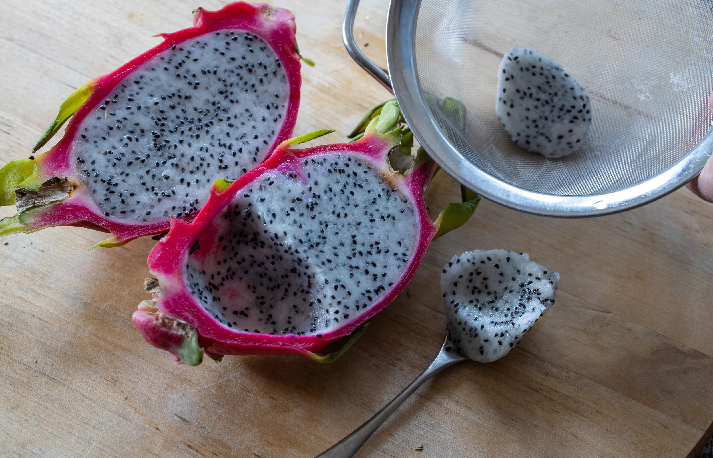 Kylvä reilusti siemeniä. Pitaija eli lohikäärmehedelmä sisältää valtavasti siemeniä, jotka itävät hyvin.
