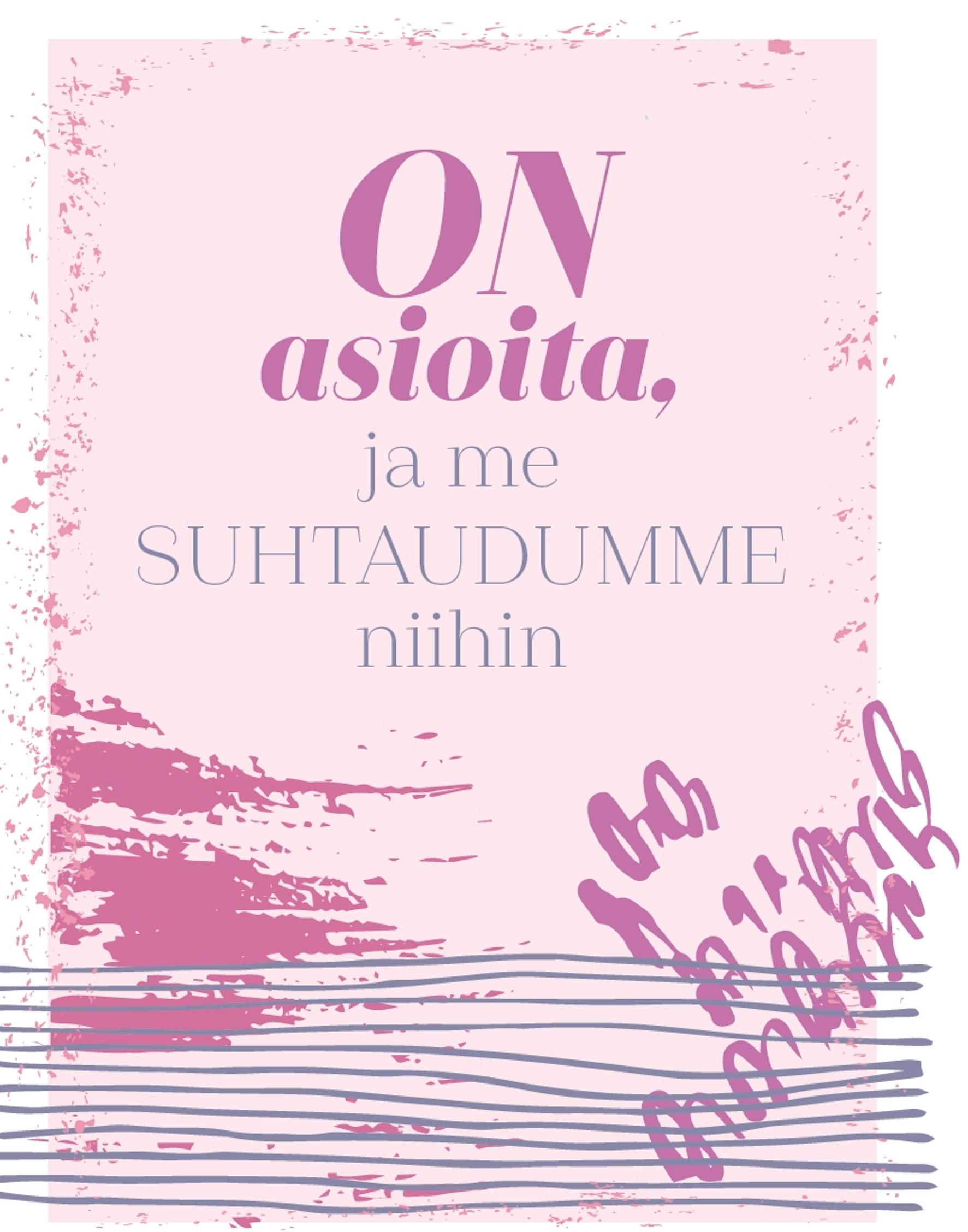 "Sain elämänohjeeni (kuva alla) muutama vuosi sitten dokumentista, joka kertoi sokeasta miehestä. Hän asui yksin maatalossa ja nikkaroi päivät pitkät. Näkevät olivat tehneet hämmästelevän dokkarin, että ohhoh, kaikkeen se umpisokea pystyykin. Miehen asenne oli, että mikäs tässä. Hän totesi, että ’maailmassa on asioita, ja me suhtaudumme niihin’.
