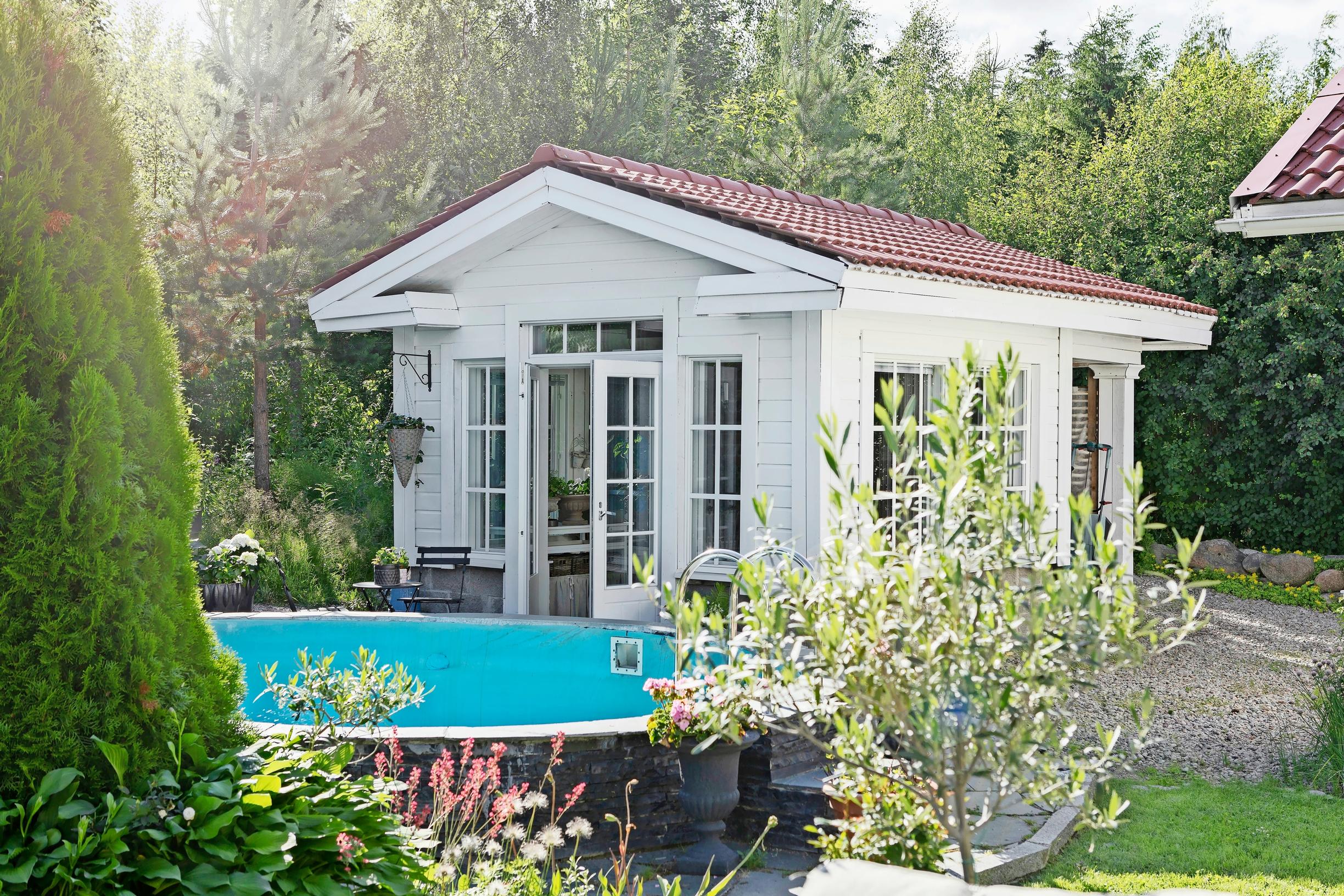 Olimme rakennuttaneet pihaan uima-altaan lastemme ollessa pieniä. Aiemmin altaan vieressä oli tyttäreni leikkimökki, mutta hänen kasvettuaan ulos siitä koimme, että siihen paikalle voisi rakentaa jotakin uutta.
