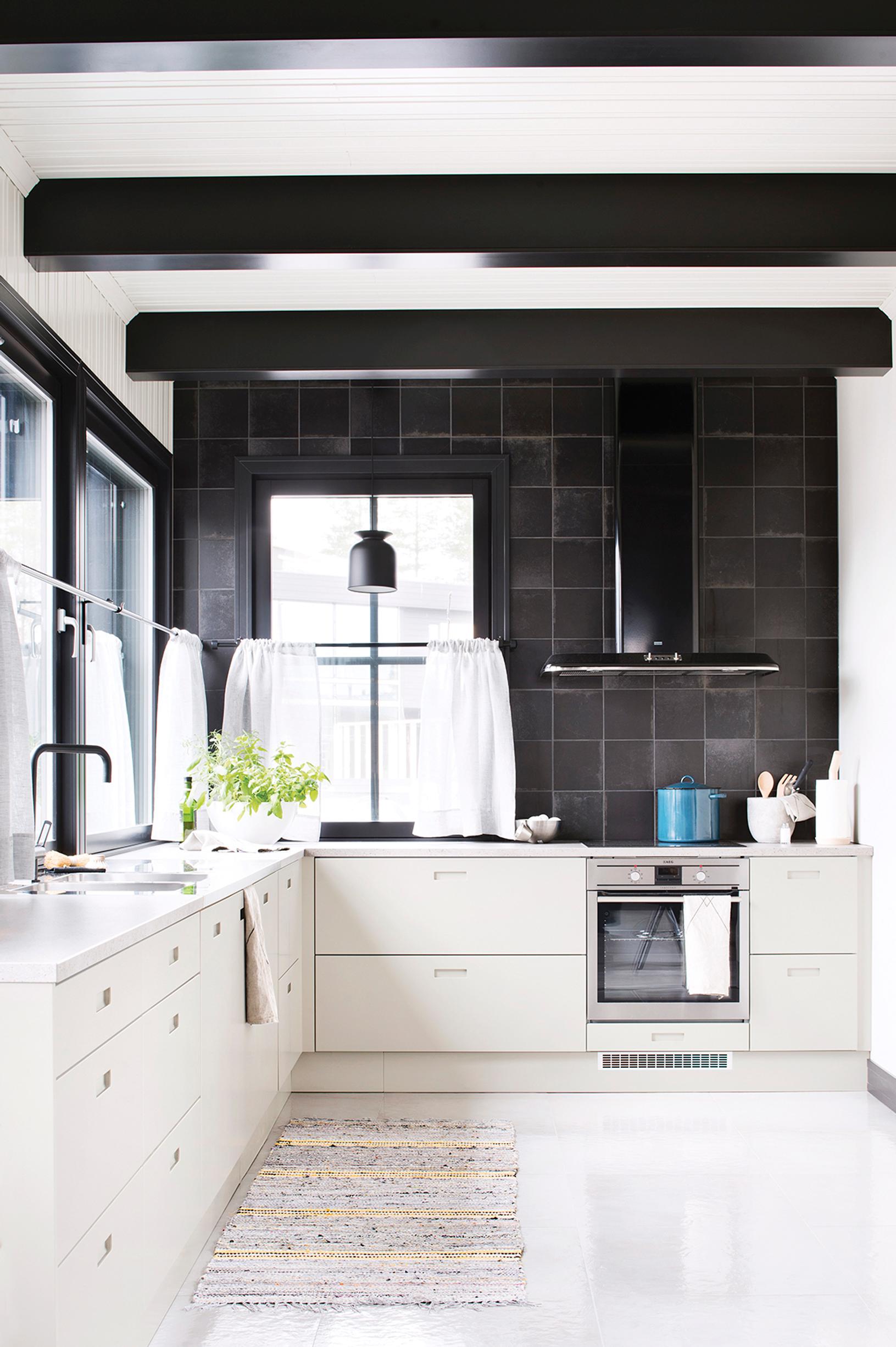 Toiminnot kannattaa miettiä loppuun asti jo suunnitteluvaiheessa, jotta arki soljuu valmiissakin keittiössä. Myös avohyllyillä voi tuoda tilaan ilmavuutta.