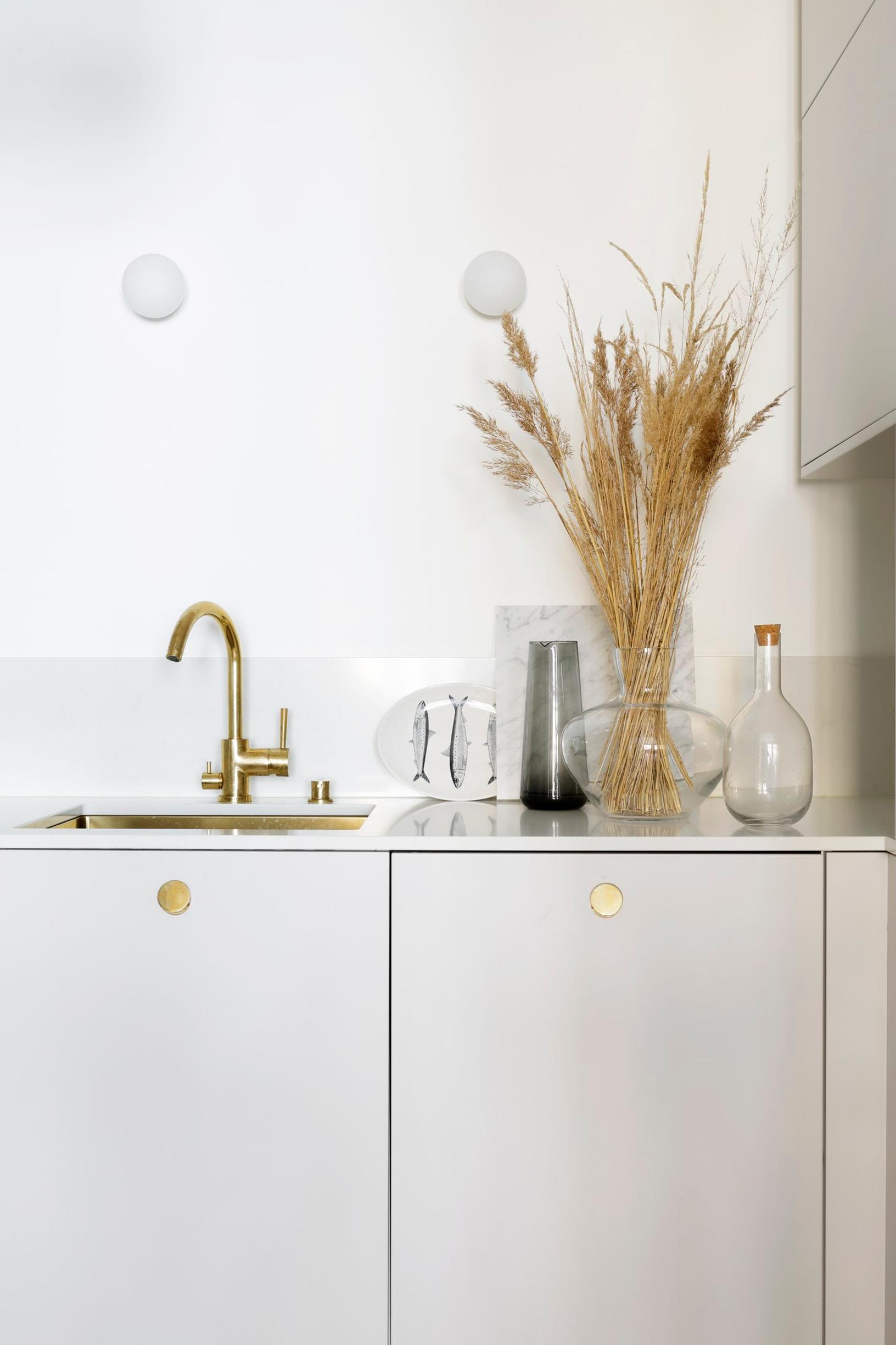 Kuparin ja messinginväriset hanat, altaat ja vetimet ovat yhä vahva trendi keittiömaailmassa. Kullanhohtoisilla yksityiskohdilla saa sopivasti säihkettä etenkin eleettömiin valkoisiin ja harmaisiin kaapistoihin. Sileät nupit ja sirot lankavetimet ovat jo klassikoita.