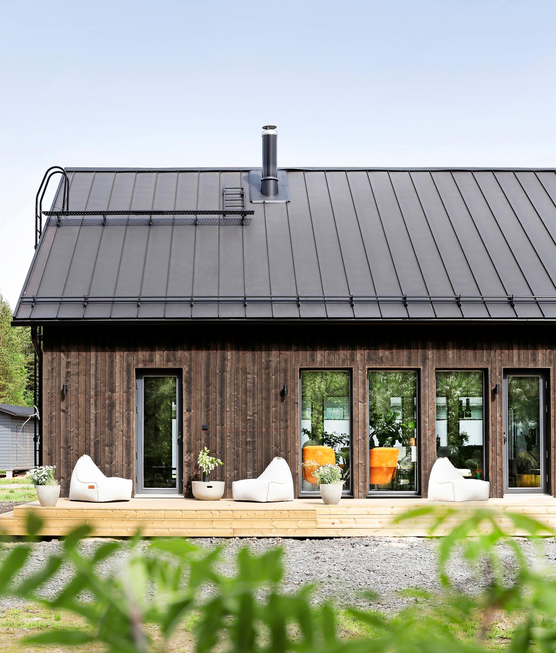 Miksi tyytyä pelkkään lattiaan, kun terassista voi muotoilla myös kalusteet! Essin ja Jussin kakkoskodin terassiprojektissa oli alun perin tarkoitus rakentaa vain laituri saunalta paljulle, mutta tekeminen vei mukanaan. Tässä sitä nyt istuskellaan omassa loungessa terassilla, jolla voi käytännössä viettää koko kesän. Puisiin sohviin saa pehmeyttä tyynyillä ja torkkupeitteillä. Lue lisää pariskunnan kesäpaikasta, jossa on panostettu paljon pihan viihtyisyyteen!