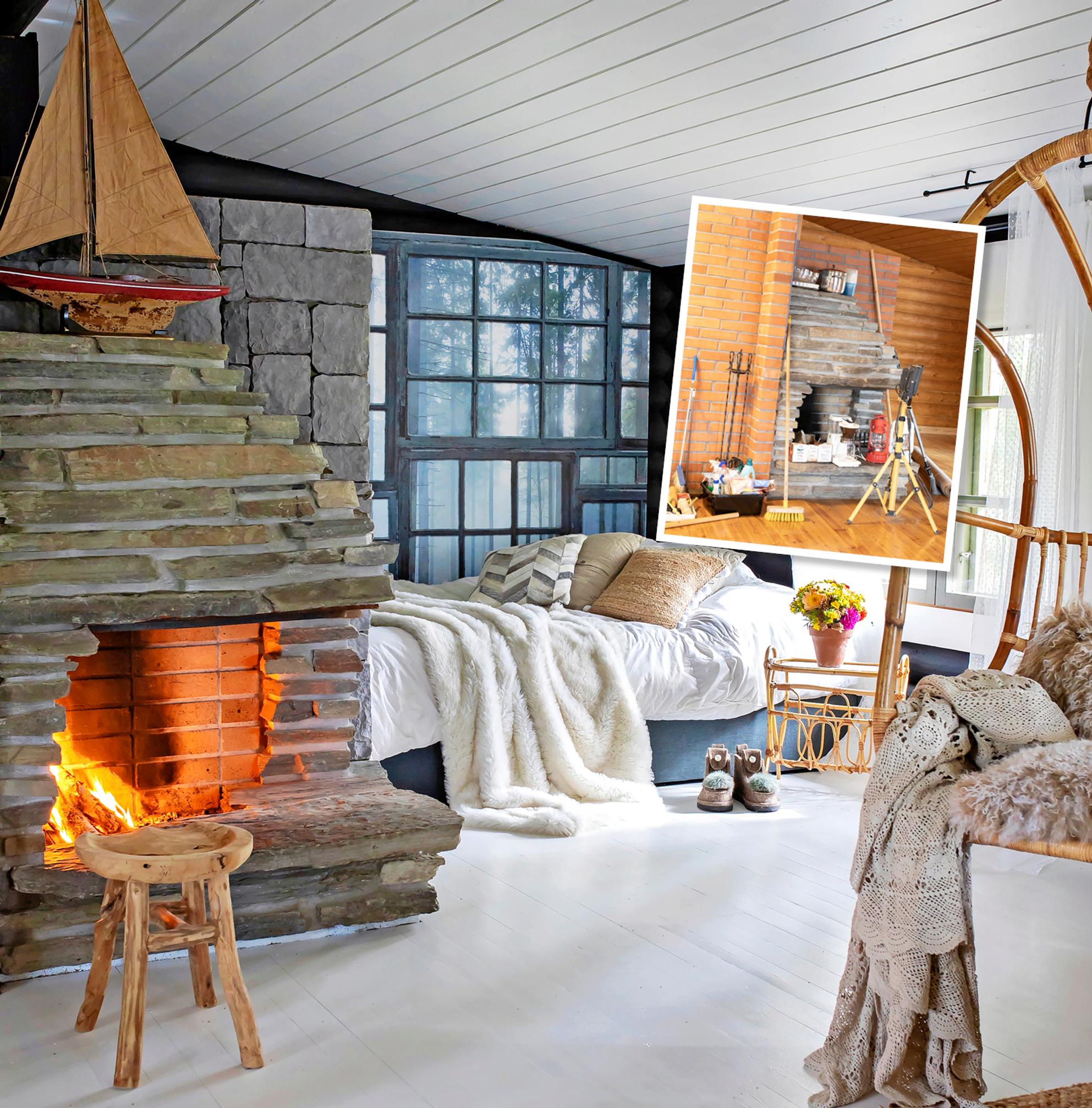 Kellastunut hirsimökki muuttui kuin uudeksi pintaremontissa – katso ennen & jälkeen -kuvat ja hinta!