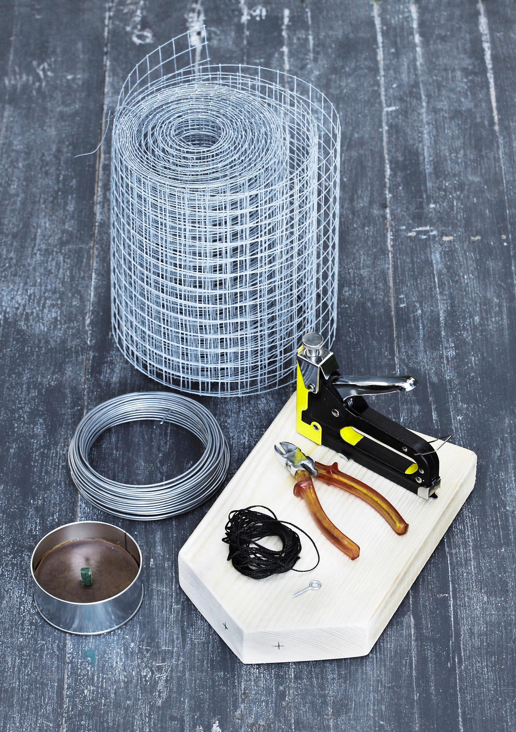- kuumasinkittyä metalliverkkoa (19 × 19 mm ruutu), vajaa 50 cm