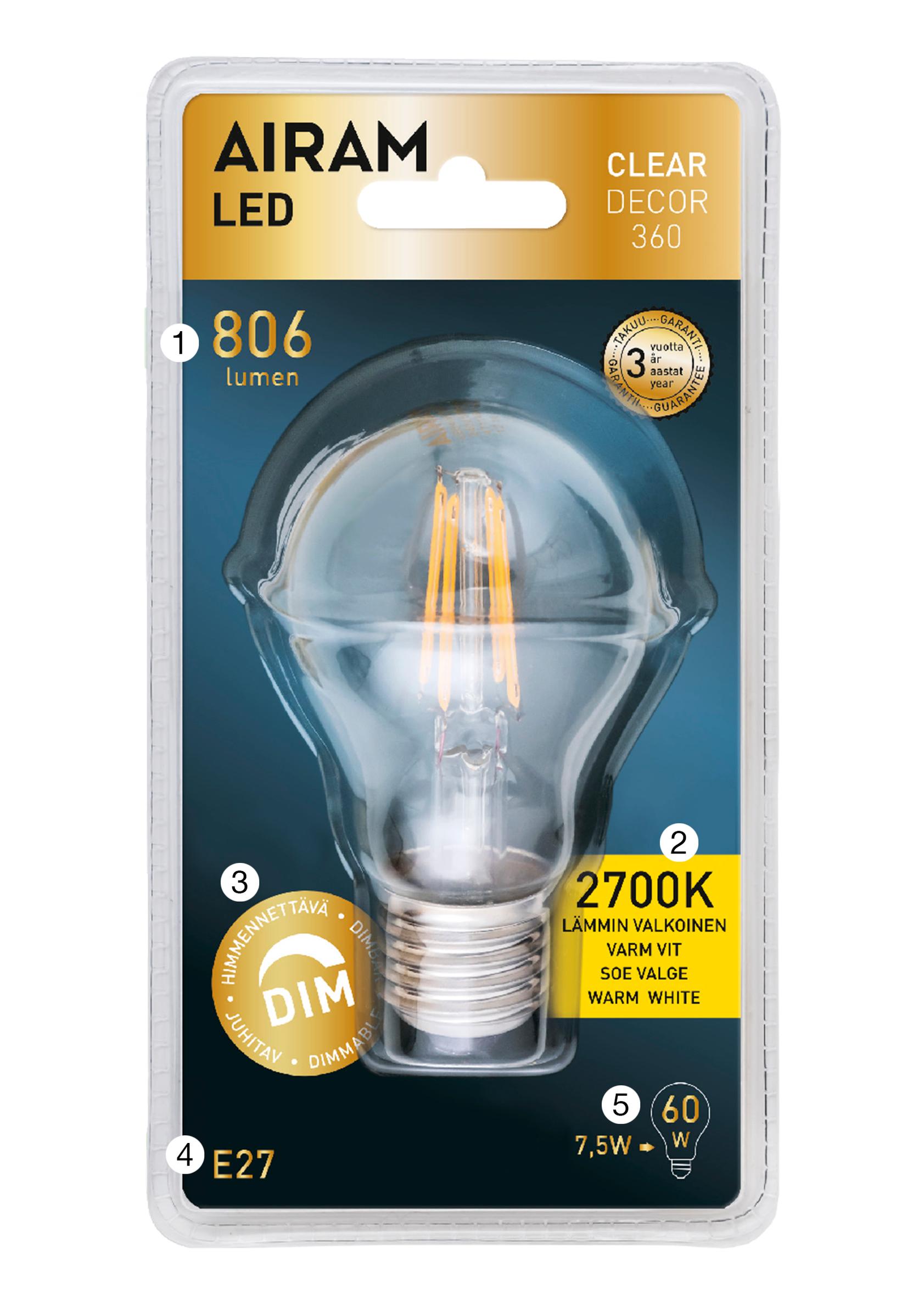 5. W eli watti kertoo lampun ottotehon eli sähkönkulutuksen.