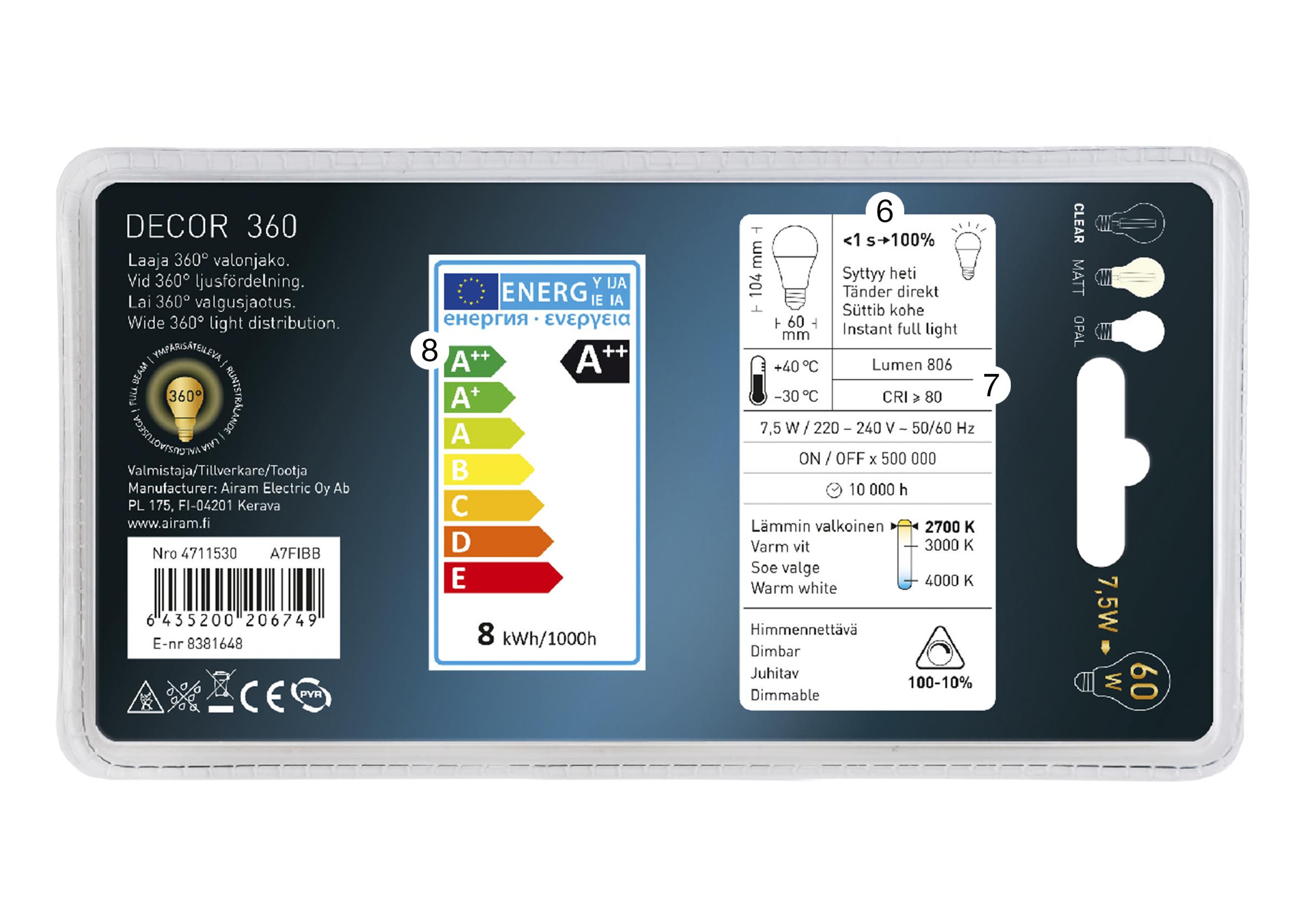 8. Energialuokaltaan ledit ovat parasta A-ryhmää.