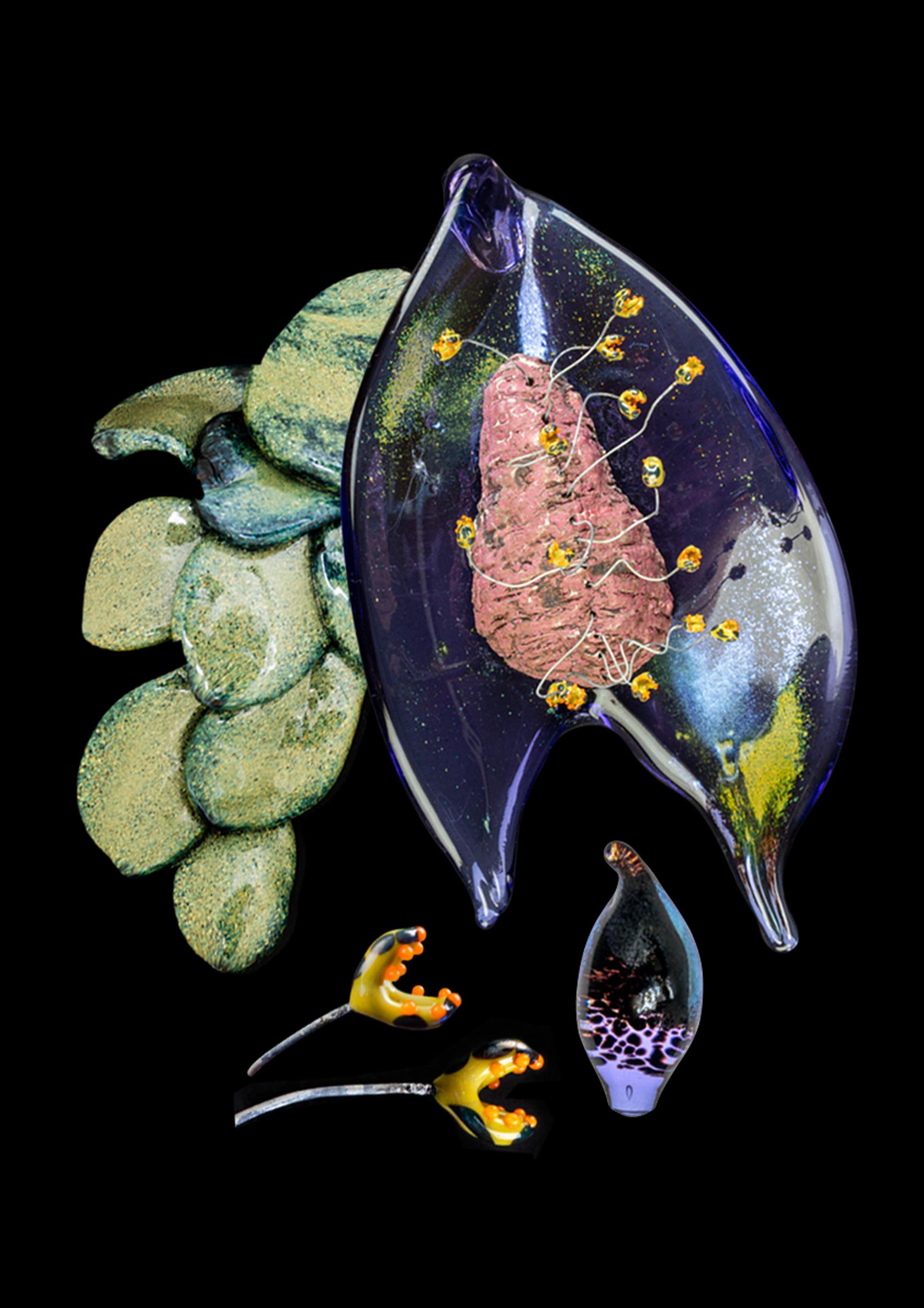 Teimme Annin kanssa useita luonnoksia ja lähdimme valmistamaan kasvien "prototyyppejä". Leikimme materiaaleillamme ja kävimme dialogia siitä, mikä on uutta ja mielenkiintoista. Koko kasvisto-projektia leimaavat kokeilevuus ja vuoropuhelu. Useimmiten Anni teki keraamisen aihion tai teososan ja minä jatkoin prosessia lasistudiolla. Keraaminen aihio kertoo minulle, millaiseksi eksoottiseksi kasviksi teos tahtoo tulla. Olemme olleet tutkimusmatkailijoita, jotka löytävät kasvit, emme niinkään taiteilijoita, jotka keksivät kasvit.