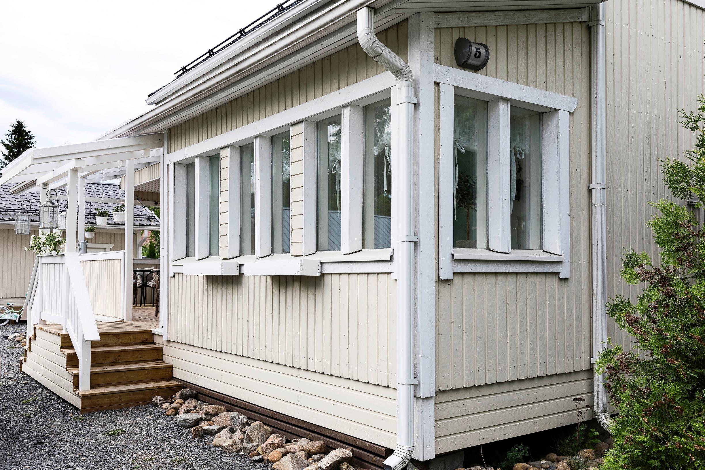 Veranta, valoa ja vaaleutta – ja lattian alta löytynyt vesivahinko! Niina ja Juha ovat remontoineet kermajäätelön väristä puutaloaan kärsivällisyydellä
