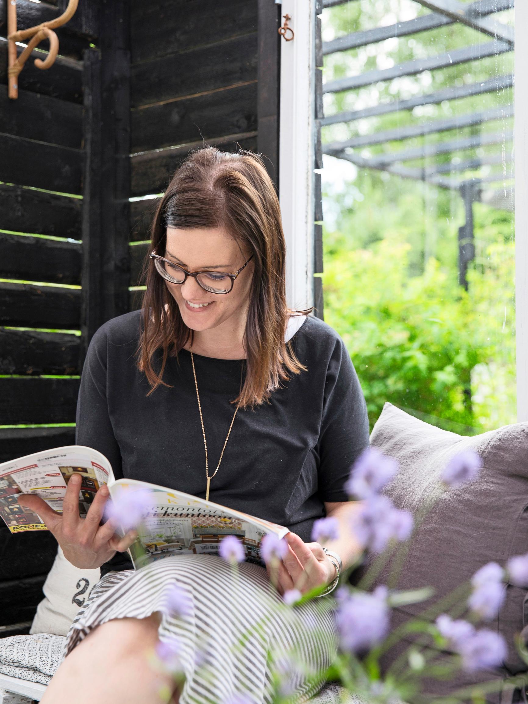 – Olen kyllä aikamoinen mööpelivalssaaja! Siirtelen mielelläni huonekaluja huoneesta toiseen tai vaihdan niiden järjestystä. Ei tarvitse ostaa uusia juttuja niin usein, kun miettii jo olemassa oleville tavaroille toisen paikan. Kyllästyn nopeasti, ja siksi suosin kirppareita ostopaikkoina. Selvitän aina ensin, löytäisinkö tarvitsemani huonekalun tai esineen käytettynä.