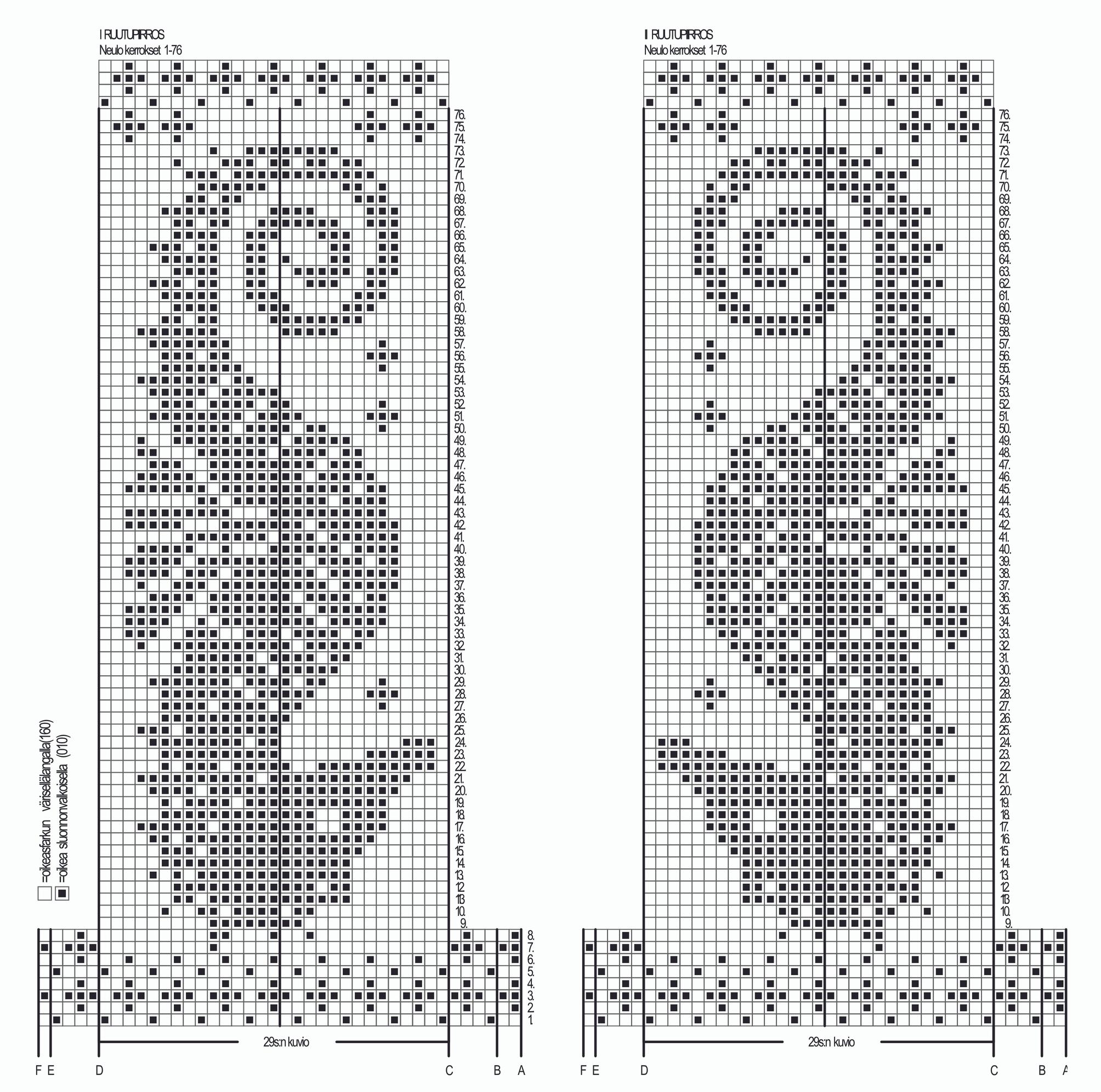 Tiheys: 25 s sileää neuletta tai kirjoneuletta = 10 cm.