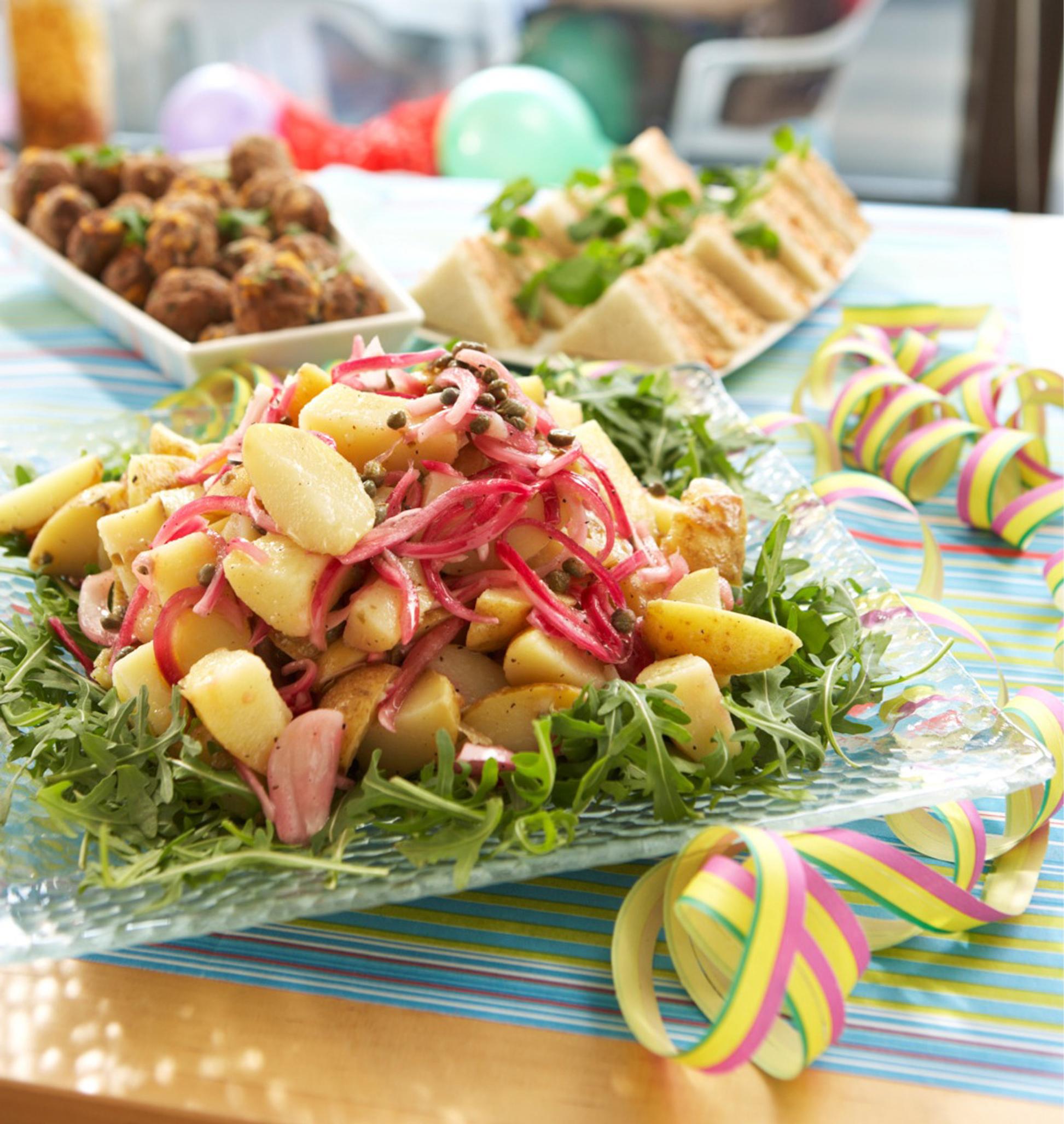 Simppeli mutta sitäkin herkullisempi perunasalaatti saa mausteikseen muun muassa marinoidulla punasipulilla ja rucolaa. "Todella hyvää oli ja kaikki meni. Teen toistekin!", kirjoittaa reseptiä kokeillut lukijamme. Ja toinen: "Muutaman kerran olen tarjonnut tätä juhlissa vieraille, ja aina on loppunut kesken kehujen kera. Muunlaisia perunasalaatteja en enää edes tee, tämä on ainoa ja oikea!" Monen mielestä juuri tämä on se paras perunasalaatti!