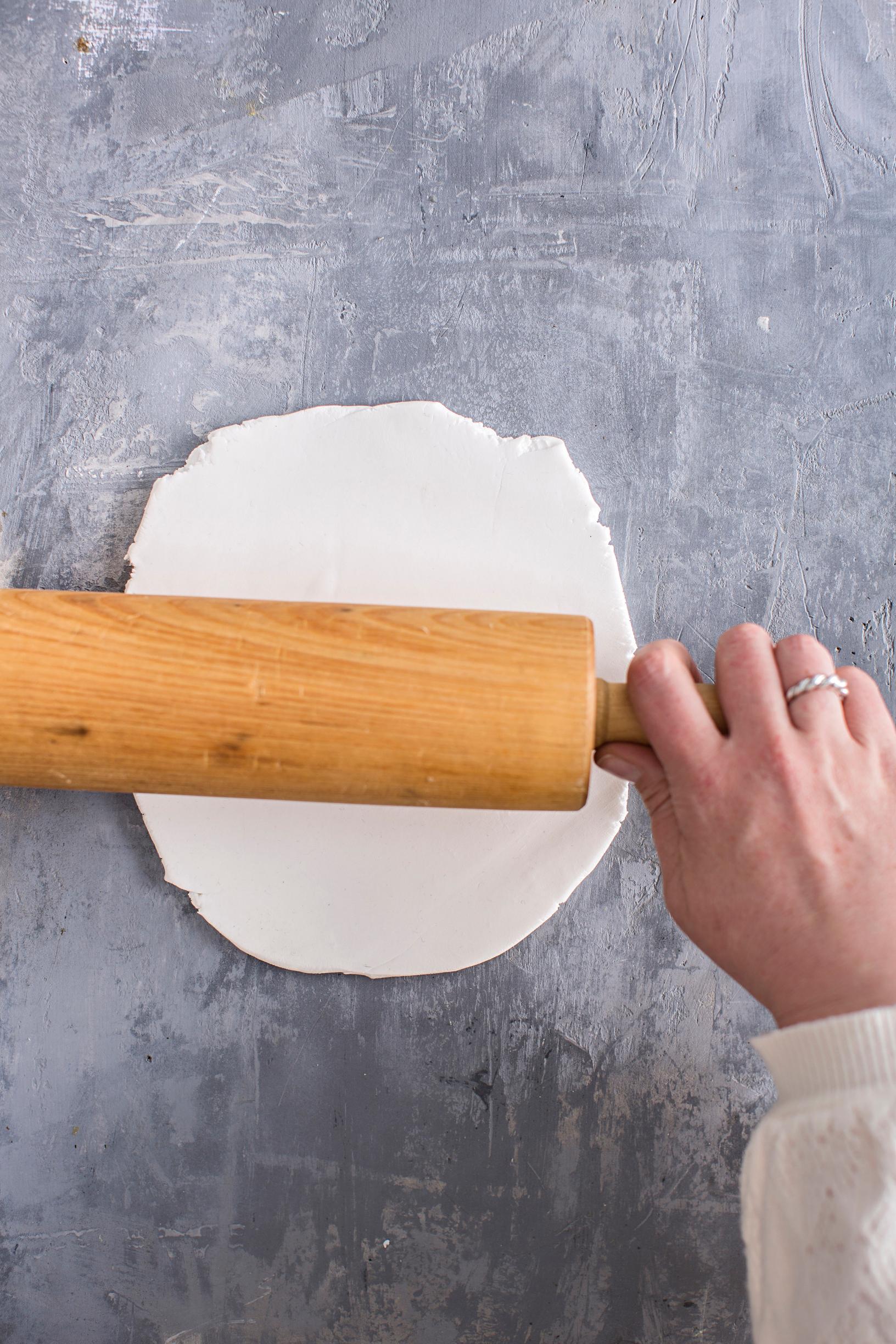 1. Vaivaa massaa käsissäsi notkeaksi ja kaulitse se noin puolen sentin paksuiseksi levyksi.