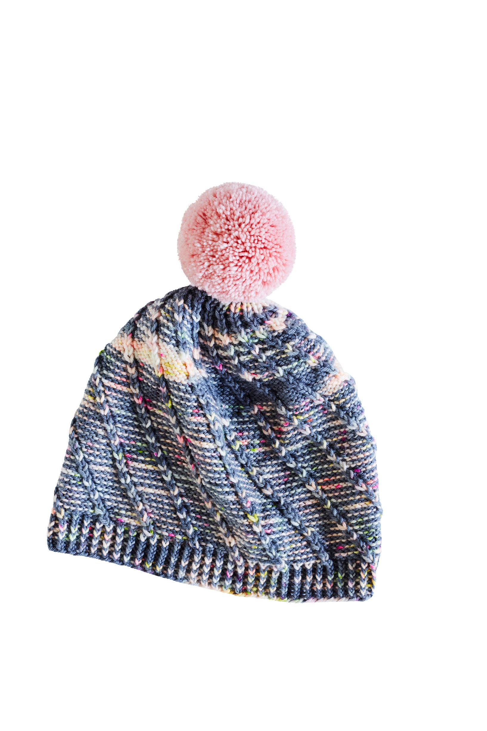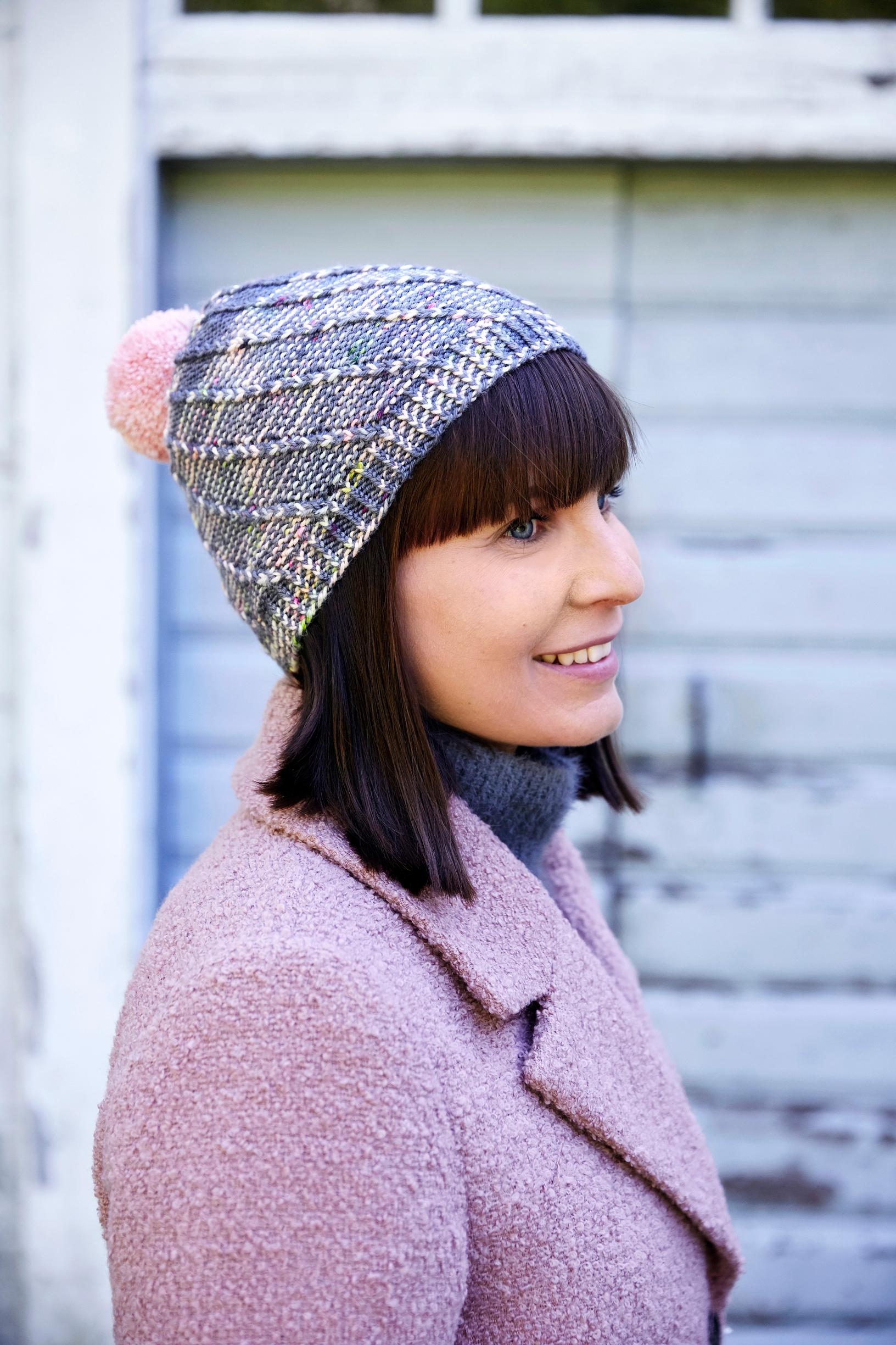 Kierrepipo saa veikeän ilmeensä kierteisistä silmukkaraidoista. Kauniin pipon voi neuloa monivärisestä tai tavallisesta langasta.