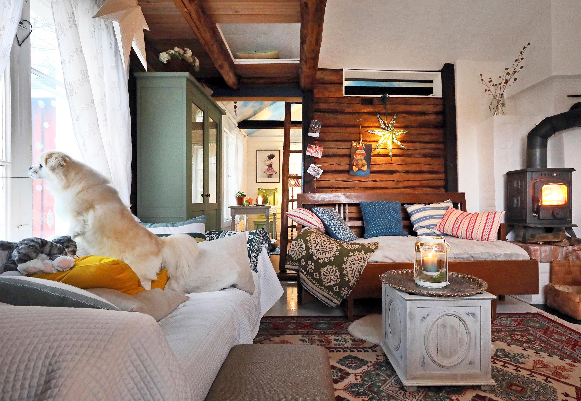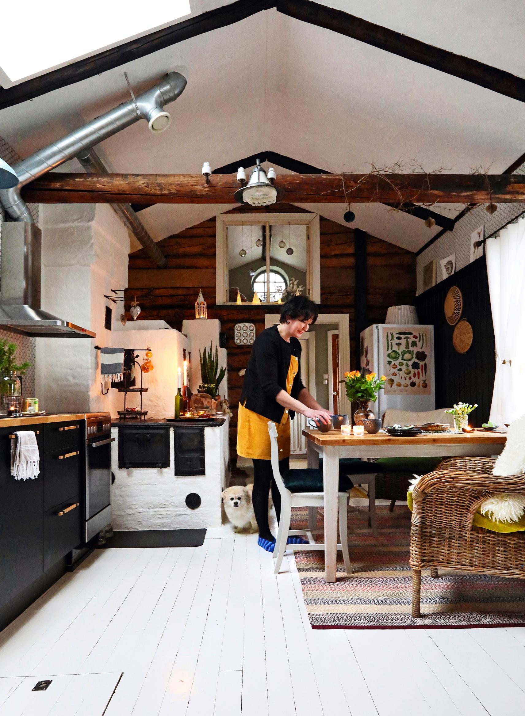 Kirsi Tenhunen muutti entisen muonamiehen talon ihanaksi tuunaajan tuvaksi. Kekseliäs sisustaja torjuu kaamoksen polttamalla kynttilöitä ja ripustamalla ikkunoihin valotähtiä.