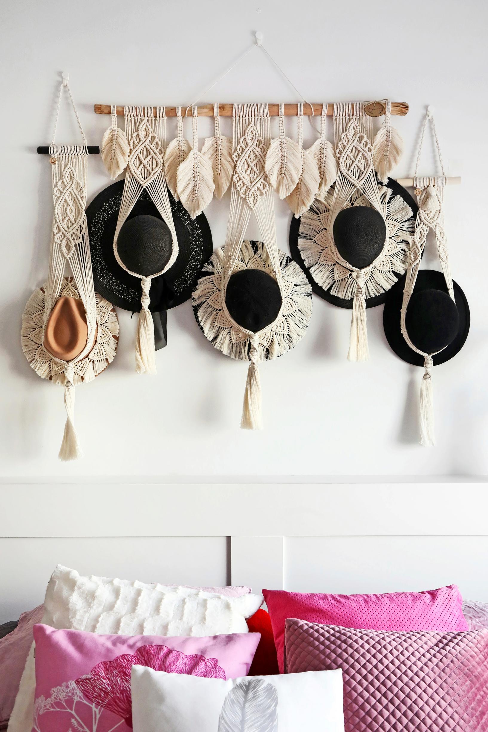 Kirsi, makrameiden tekemisessä tarvittavat telineet kuuluvat olohuoneesi sisustukseen. Kuinka usein ehdit solmia?