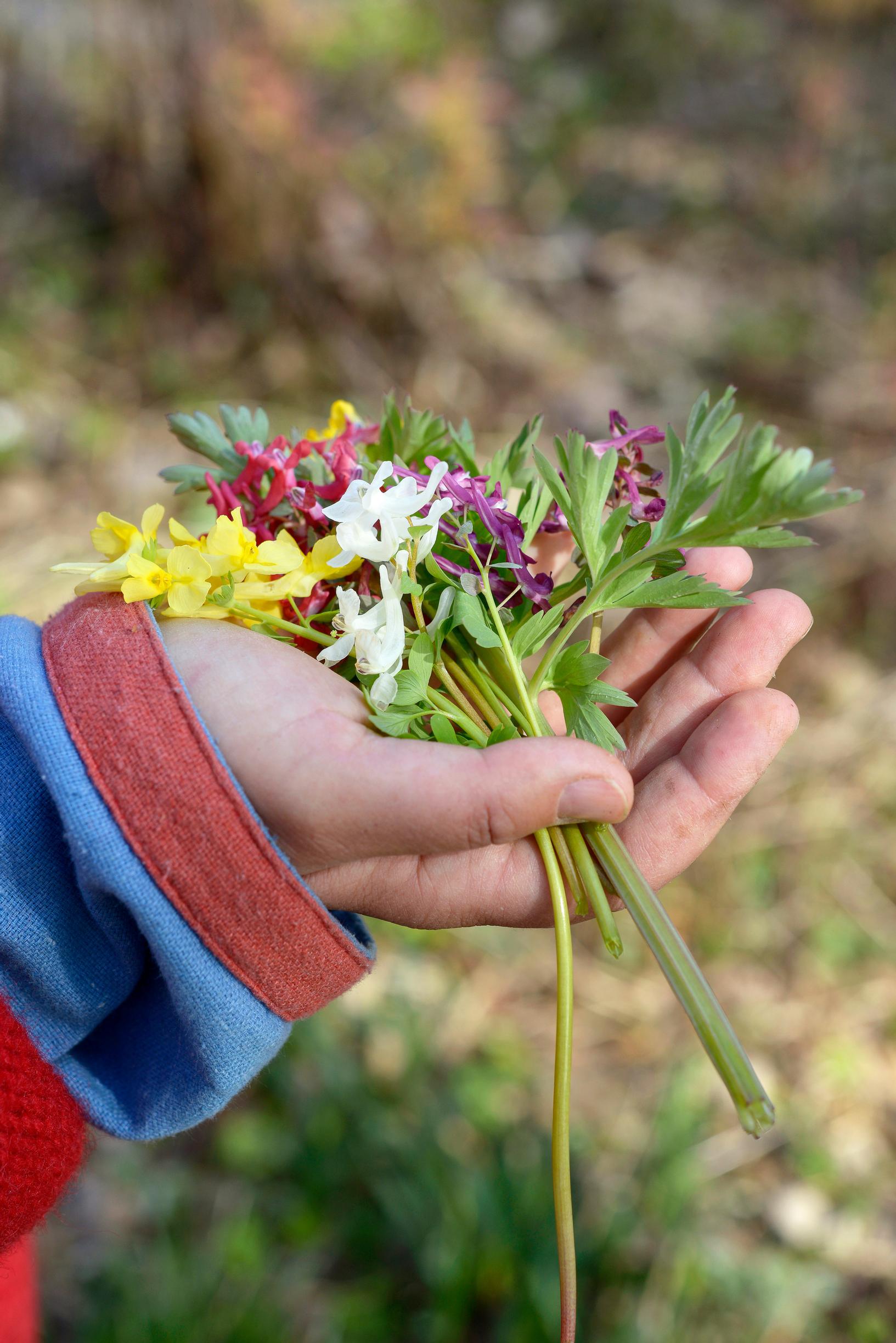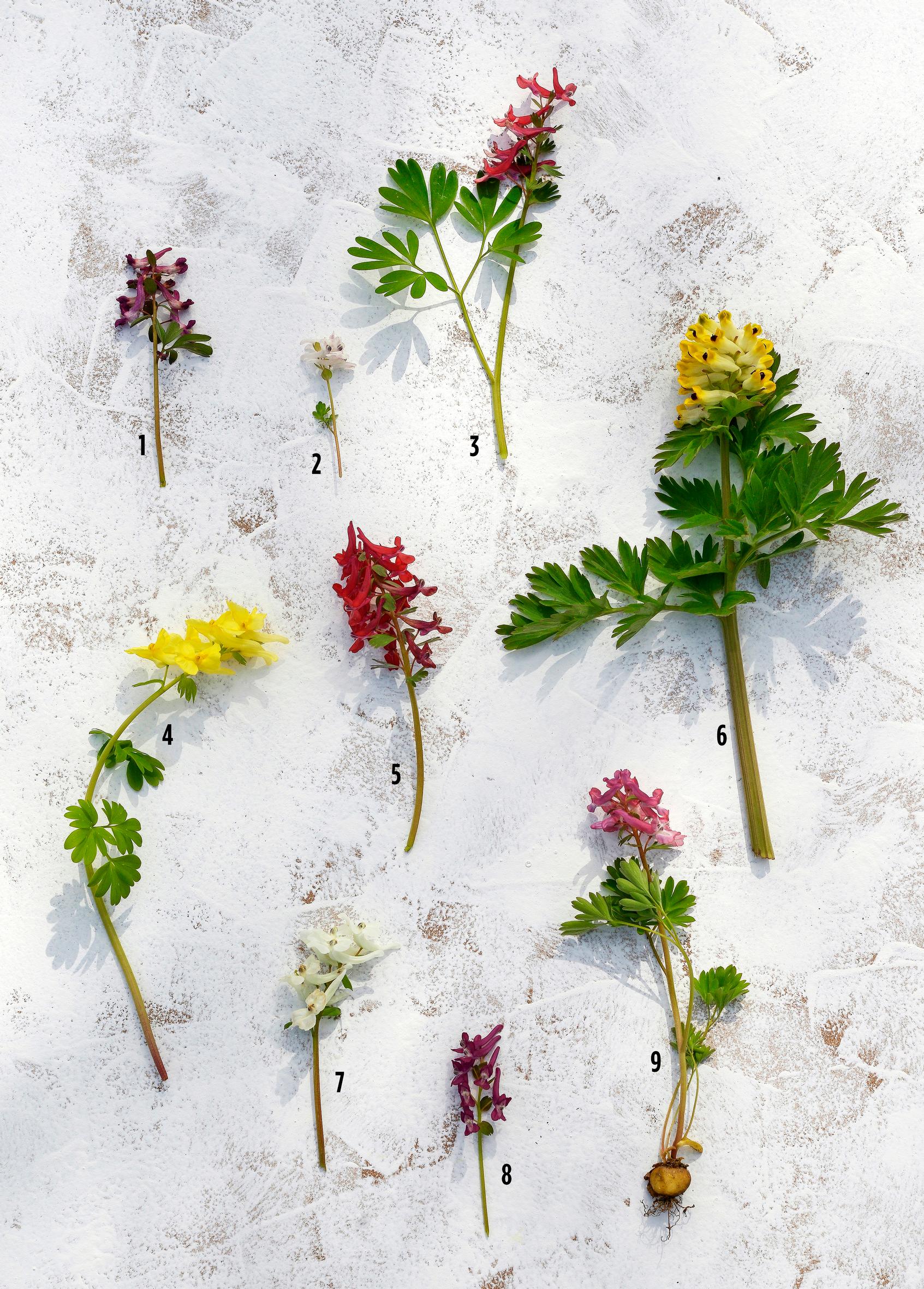 – Harvinaisuuksia ei juuri kukaan edes havaitse, Tiina sanoo ja esittelee Corydalis paschei -lajin hailakoita kukkia. Ei ole sävyä, jota kiurunkannuksista ei löytyisi. Niiden kukinnot ovat kuin jalokiviä.