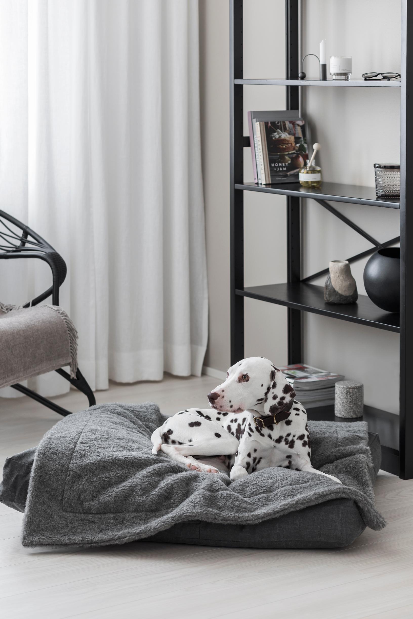 Kehottaisin kiinnittämään huomiota erityisesti materiaalivalintoihin. Luonnonmateriaaleissa on luontaisesti ominaisuuksia, jotka ovat paitsi esteettisiä myös hyviä koiran hyvinvoinnille. Esimerkiksi villa lämmittää kylmällä ja viilentää lämpimällä.