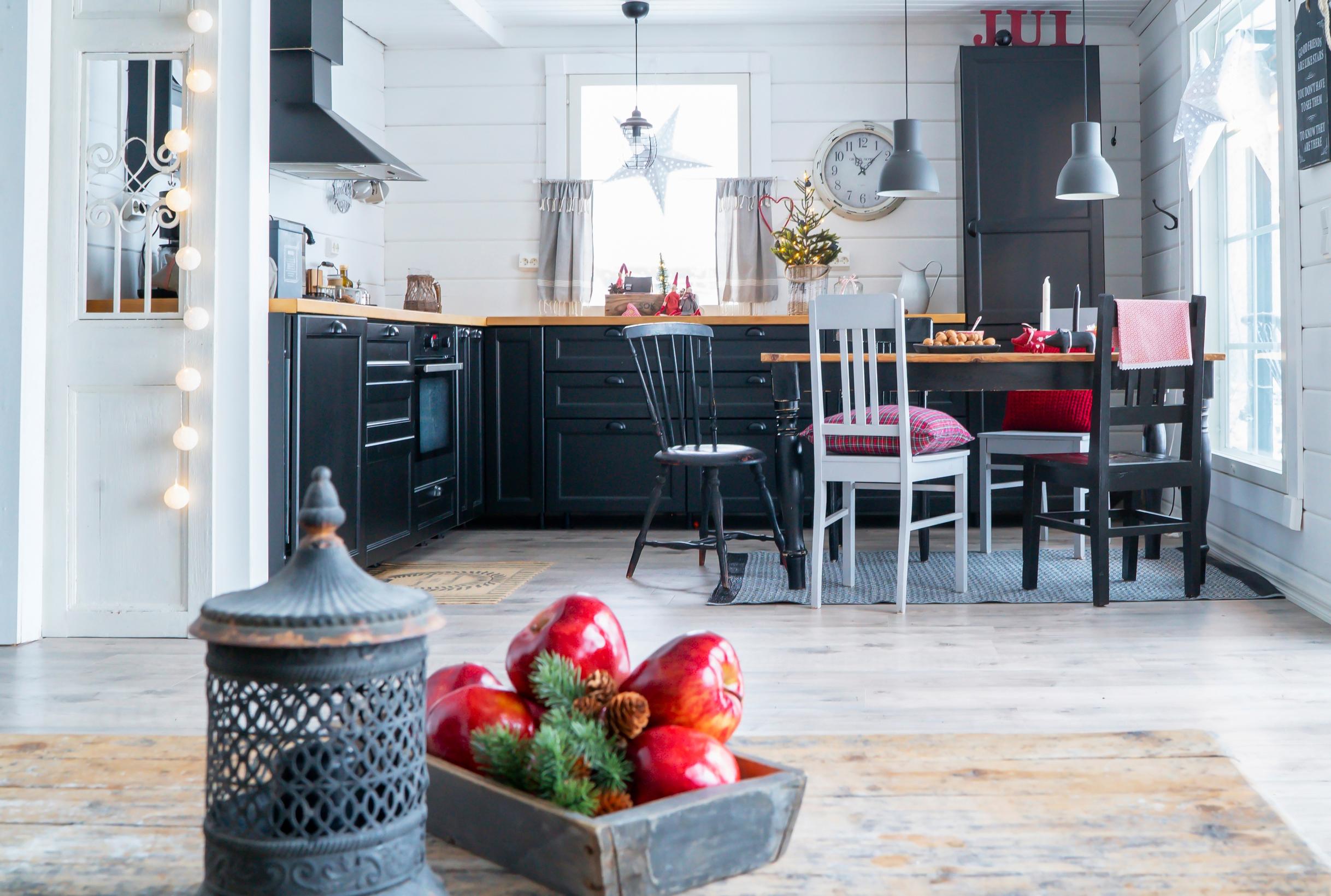 Jouluna havukranssit ripustetaan oviin jo hyvissä ajoin, mutta joulukuusi pääsee tupaan vasta aatonaattoiltana.