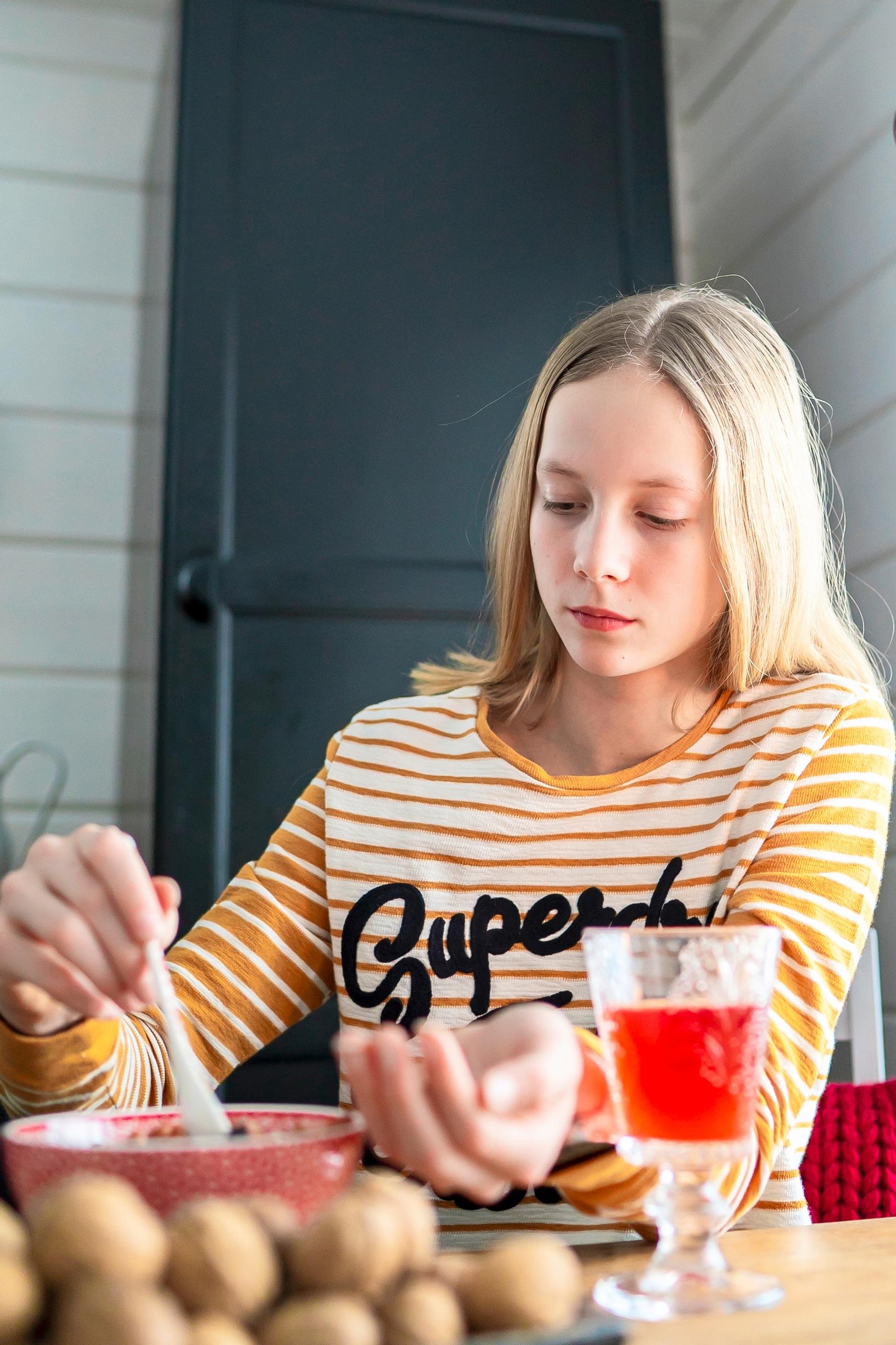 – Me kuuntelemme yhdessä joulurauhan julistuksen. Silloin juodaan glögiä ja syödään mökkipipareita, juustoja sekä suklaata. Kamiinassa ritisevä tuli antaa lämmön ympärilleen, Tiina kertoo.