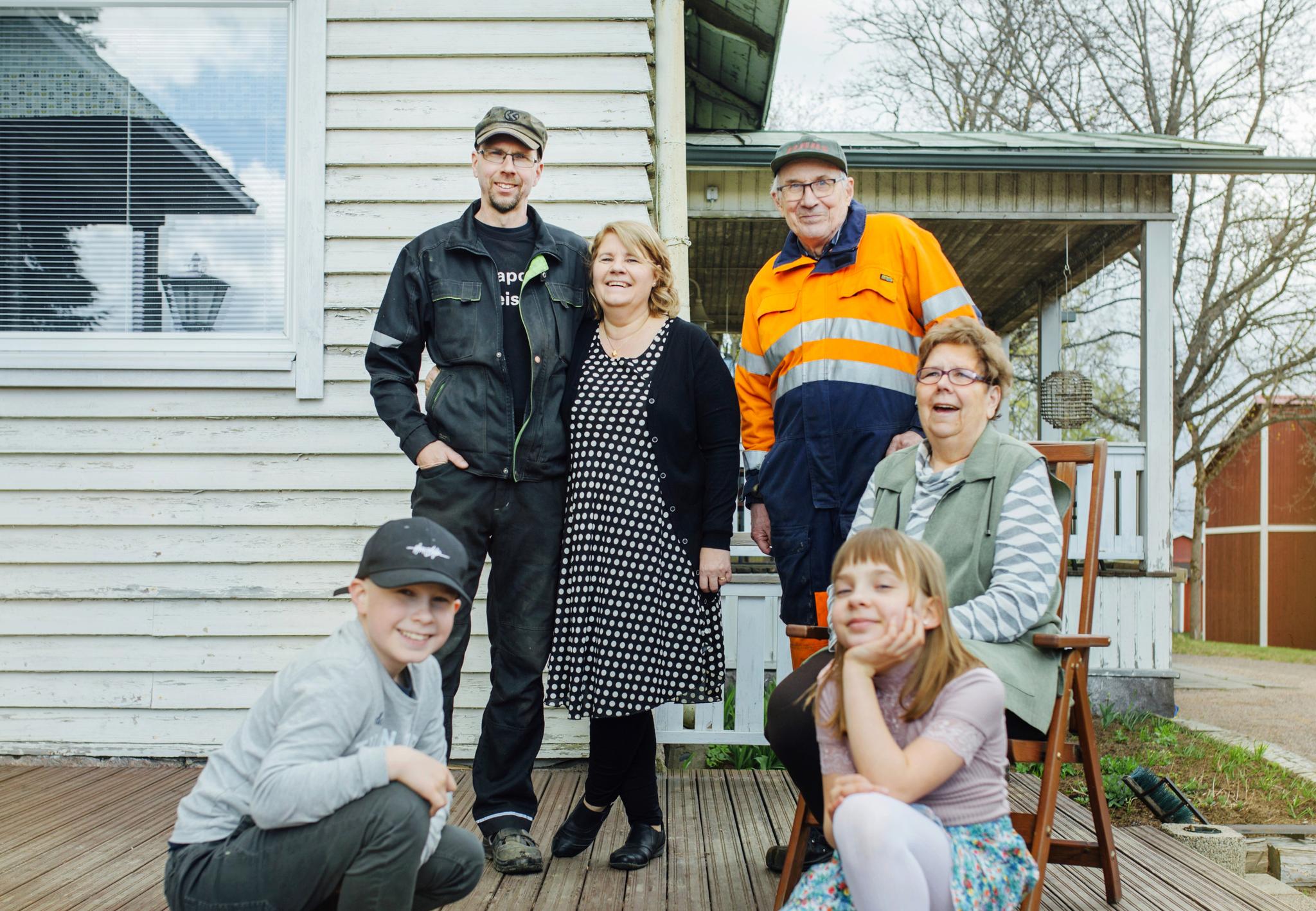Isossa maalaistalossa Janakkalan Tervakoskella asuu tyytyväinen Kinnarien perhe kolmessa polvessa. Talon toisessa päädyssä on Pirjon, 57, hänen miehensä Kari Kinnarin, 50, ja heidän lastensa, kymmenvuotiaiden kaksosten Viivi ja Ville Kinnarin koti. Toisessa päässä asuvat Karin vanhemmat Kirsti, 78, ja Pentti, 78, Kinnari.