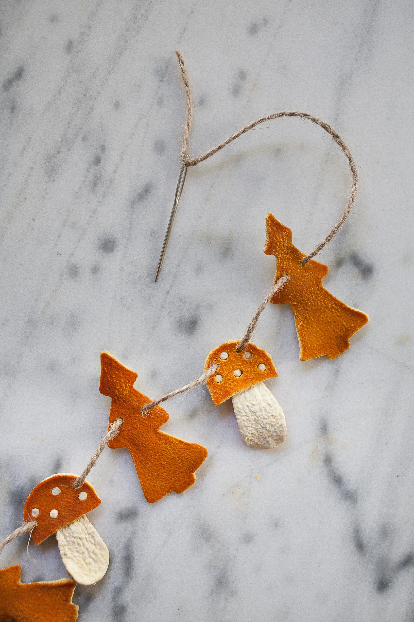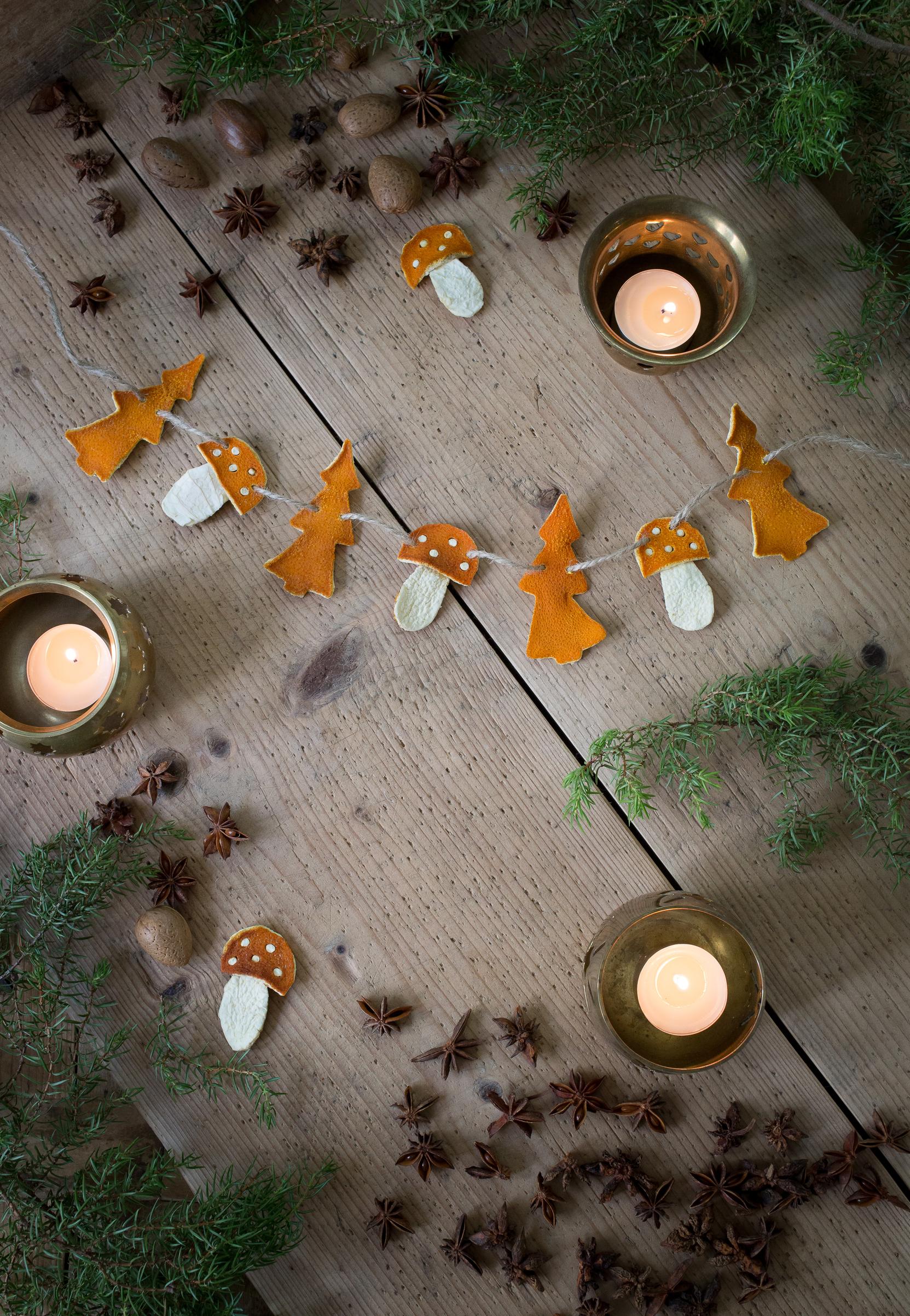 Kuivatuista appelsiininkuorista saat ihania joulukoristeita – ota paloja piparimuotilla tai askartele somia sieniä