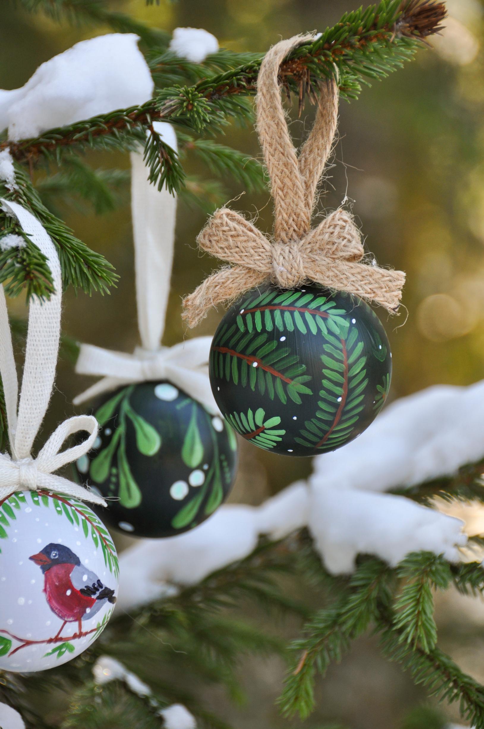Tuunaa tavanomaiset joulupallot akryylimaalilla pieniksi taideteoksiksi. Helpointa on maalata havuja. Ripusta valmiit pallot ulos kuusen tai jonkin muun havupuun oksille. Katso Fanni Sundellin ohje täältä!