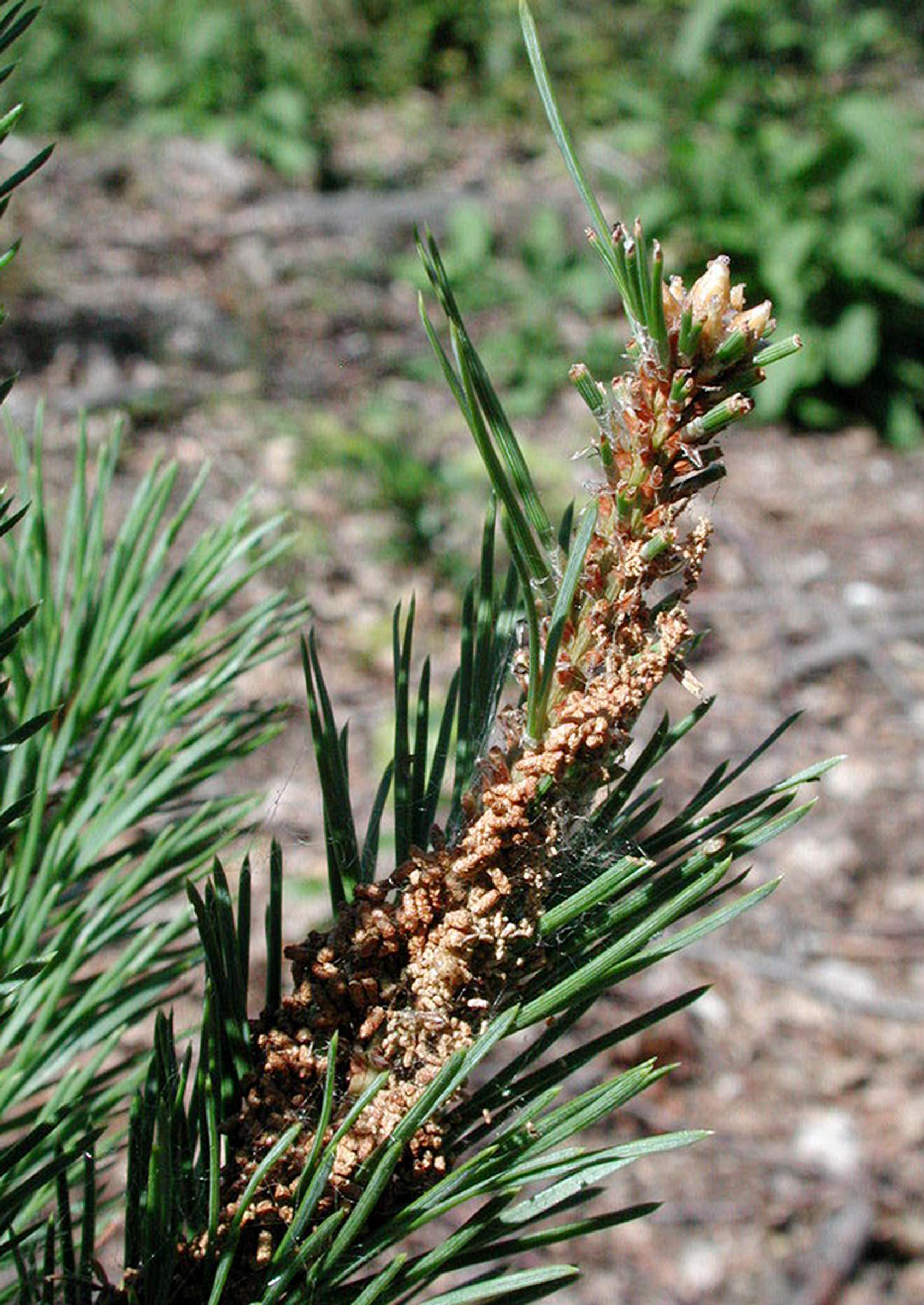 - Toukat syövät neulasia. Paljastuneeseen kohtaan jää tyhjä kudospussi, jossa on papanamaisia ulostepalloja.
