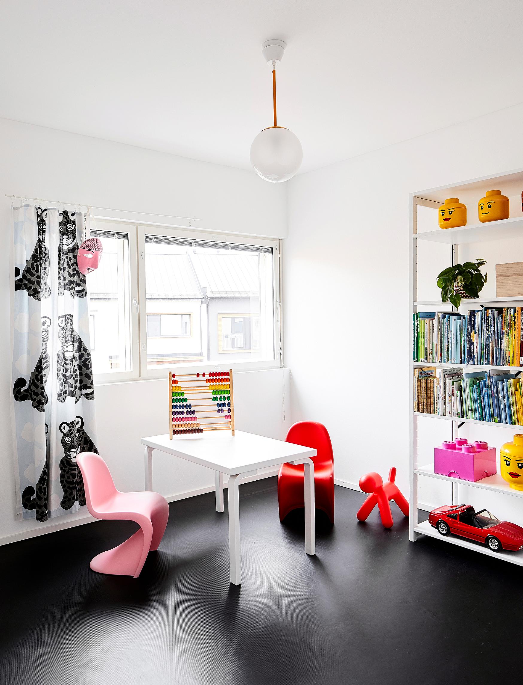Kuin sarjakuvasta! Anna-Sofian ja Artun viisilapsisen perheen koti on värien ja leikkisten muotojen valtakunta