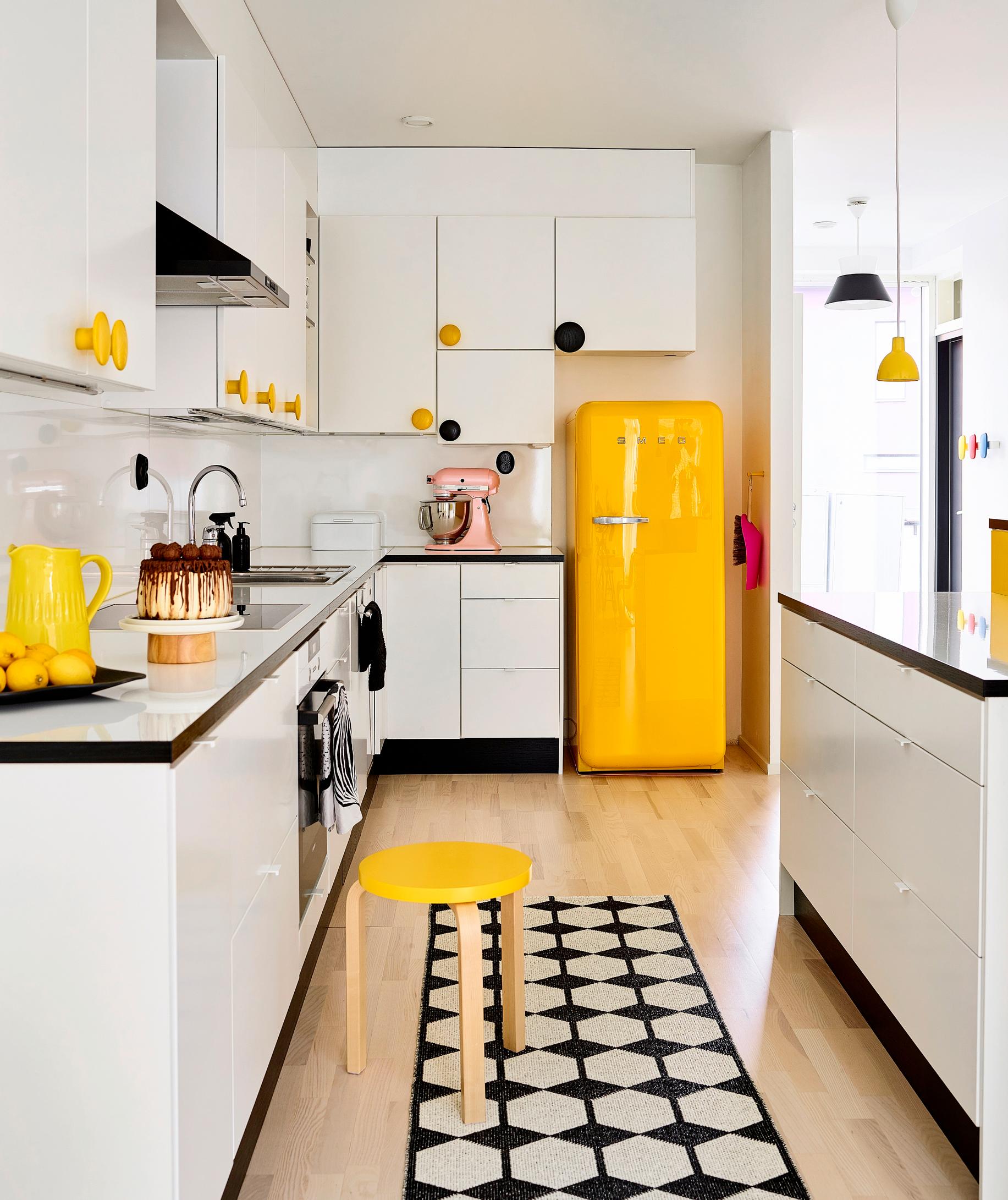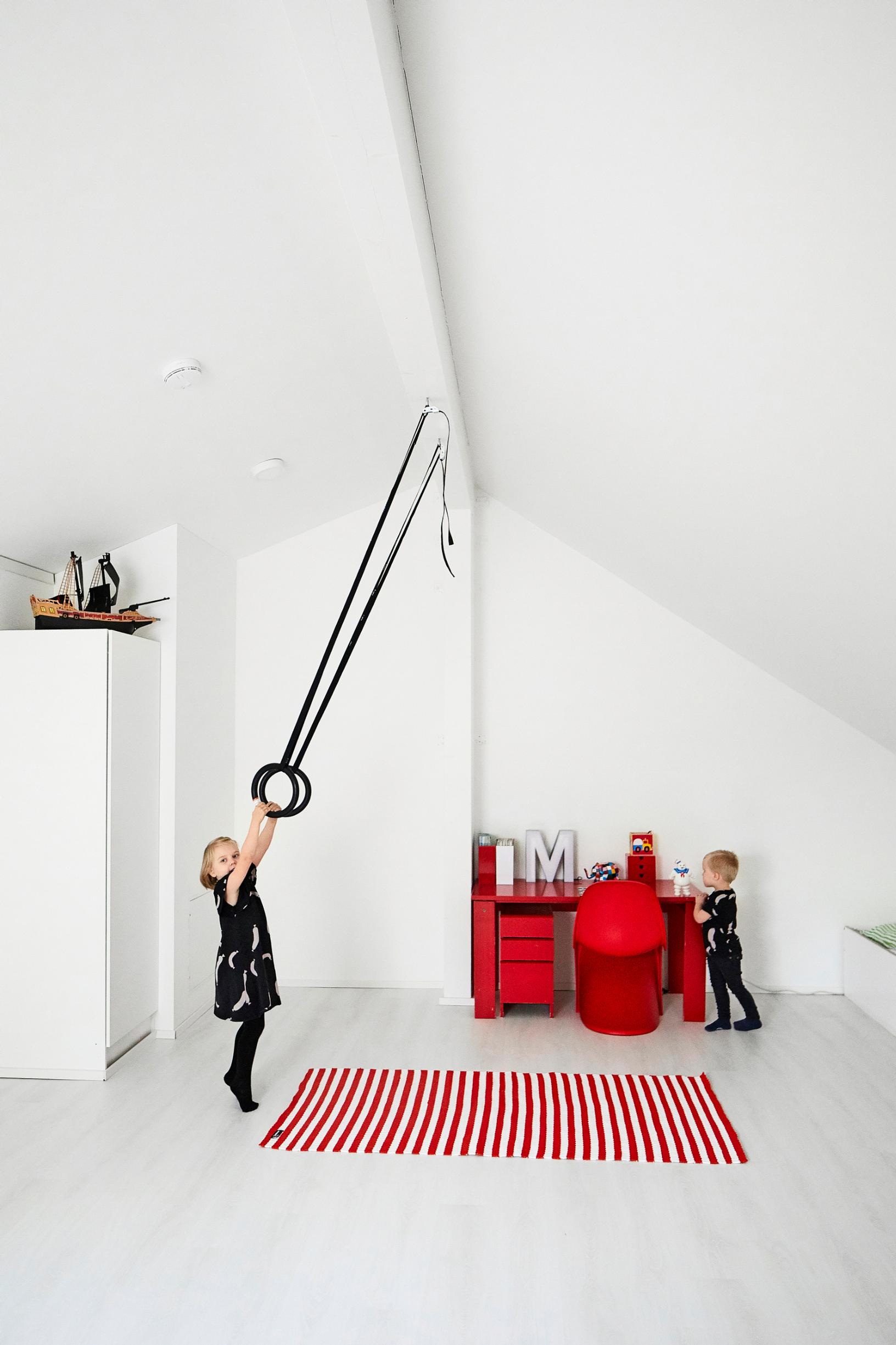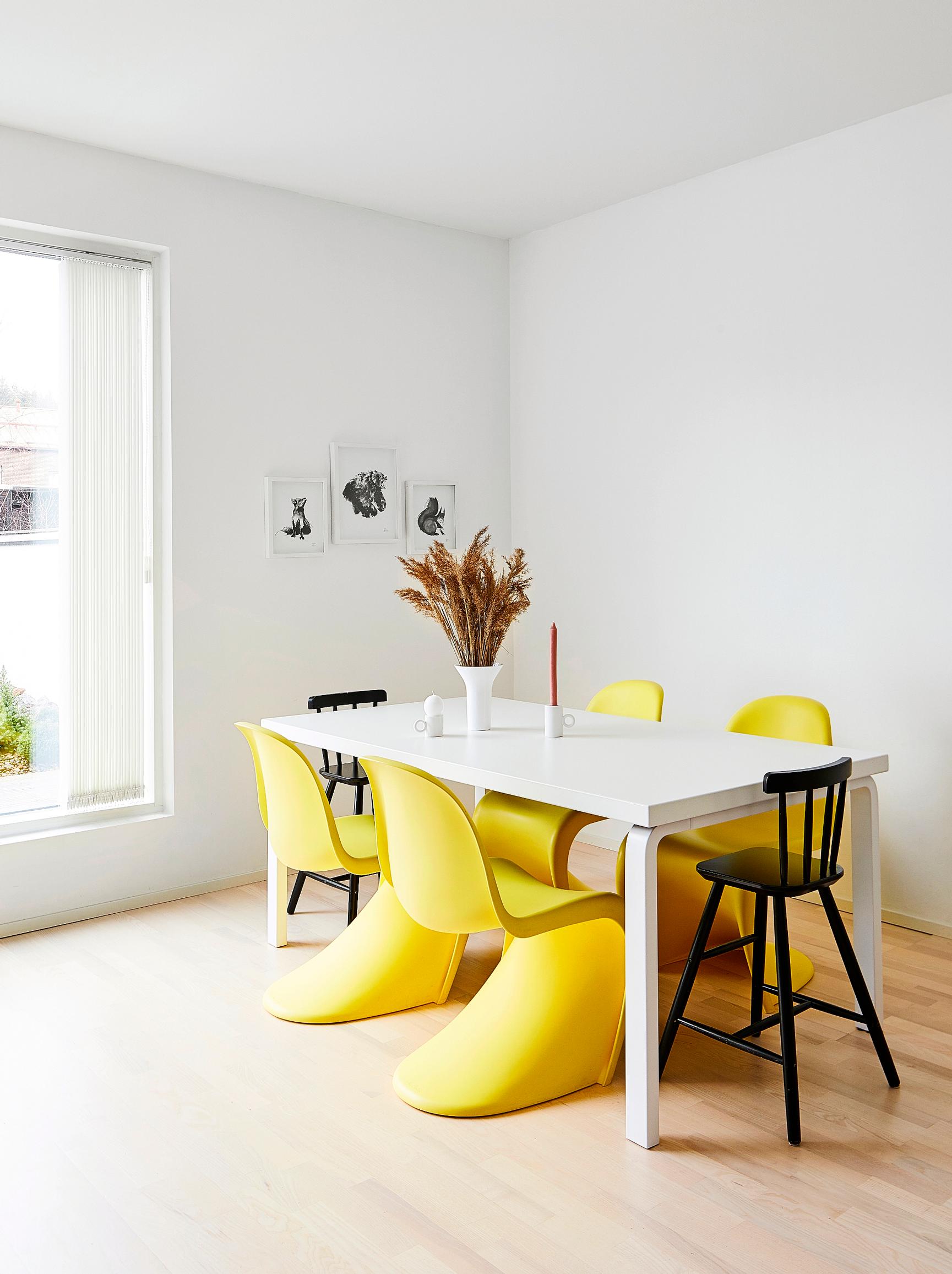 Anna-Sofia ja Arttu Hartikainen rakensivat viisilapsiselle perheelleen modernin kaupunkipientalon. Tässä kodissa rakastetaan kirkkaita värejä – erityisesti keltaista ja punaista.
