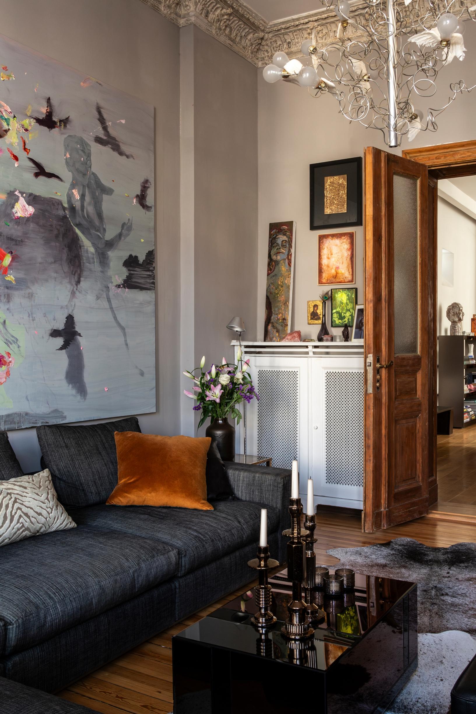 Perhe muutti Marburger Strasselle syksyllä 2023. Asunto oli ollut kymmenen vuoden ajan Suomen suurlähetystön vuokra-asuntona, jossa ehti asua kaksi peräkkäistä kulttuurivastaavaa. Koti on alun perin remontoitu heidän tarpeitaan varten. Ruokailutila jatkuu oleskelualueena, jossa on kodin toinen sohvaryhmä. Sen yllä on Ville Kylätaskun teos Aphrodite ja Kiriakos Tompolidisin maalaama potretti. Katosta riippuu Anselm Reylen näyttävä valoteos.