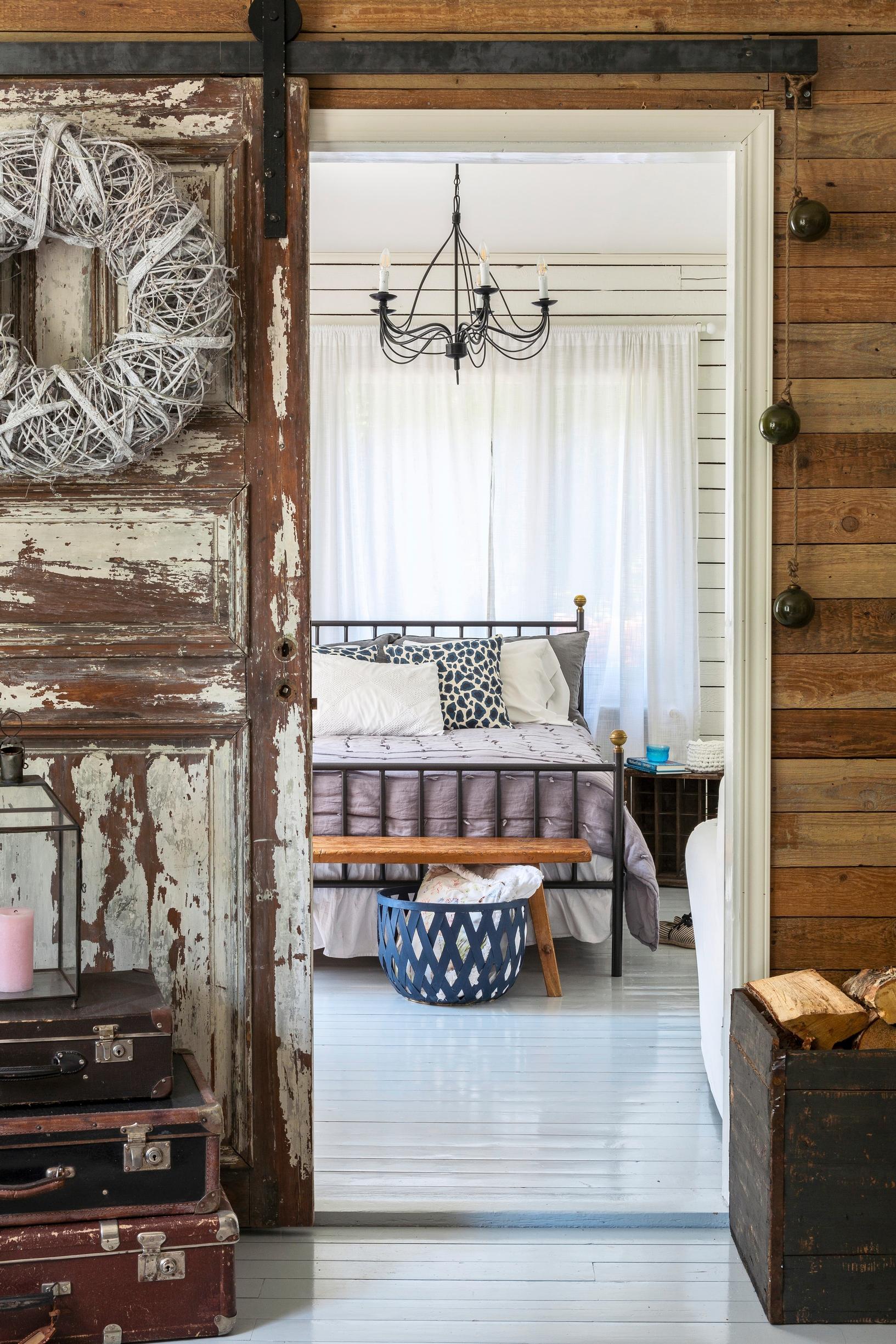 Carola hankki kotinsa makuu- ja olohuoneen väliin vanhan oven osto- ja myyntiliikkeestä. Jotta aukeava ovi ei veisi tilaa, siitä tehtiin liukuovi. Mekanismi on Domus Classicasta.