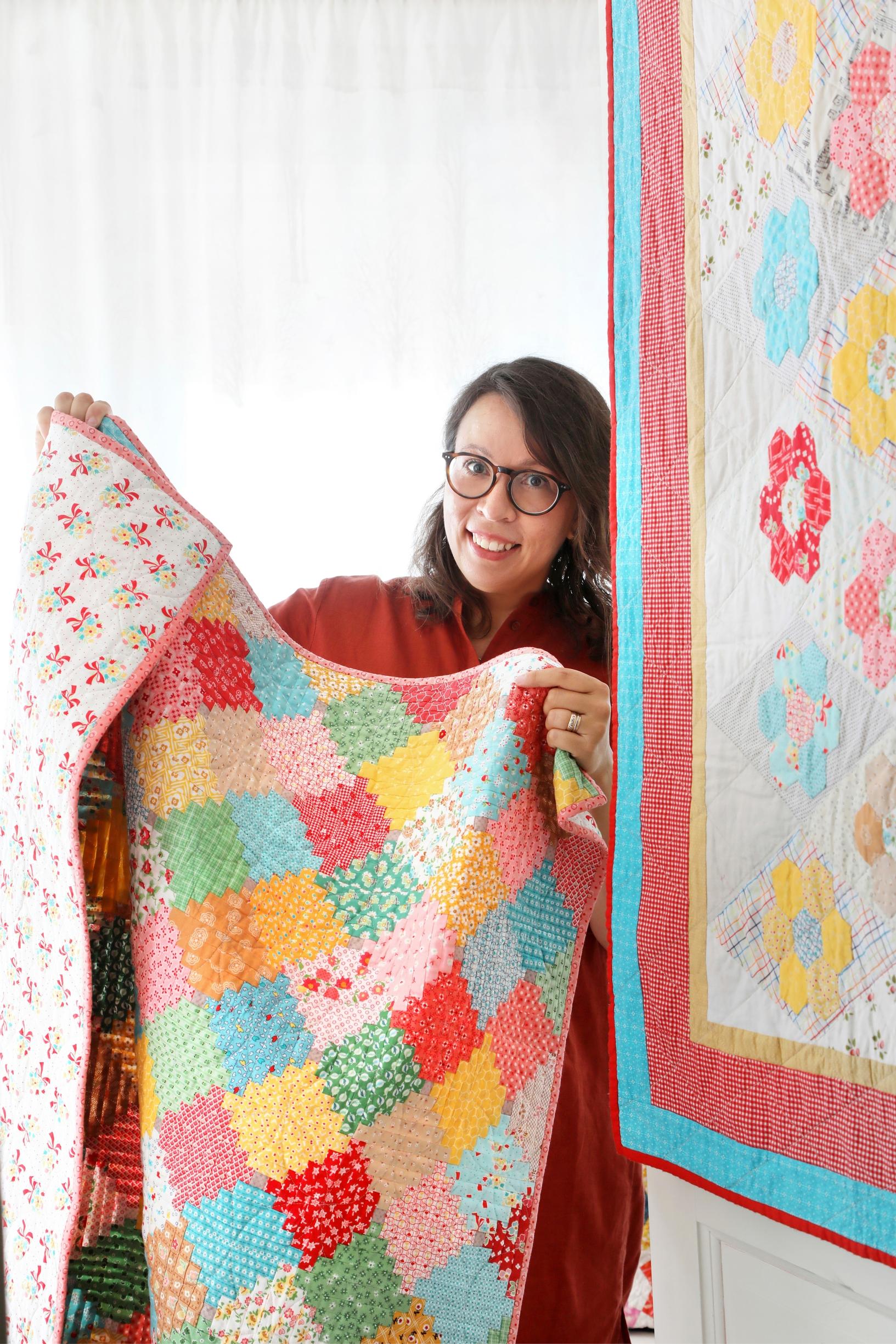 ”Käsinompelu on sopivan hidasta. Jos nimittäin olen ihan rehellinen, meillä olisi jo ihan riittävästi tilkkupeittoja ja käsityöpussukoita.”
