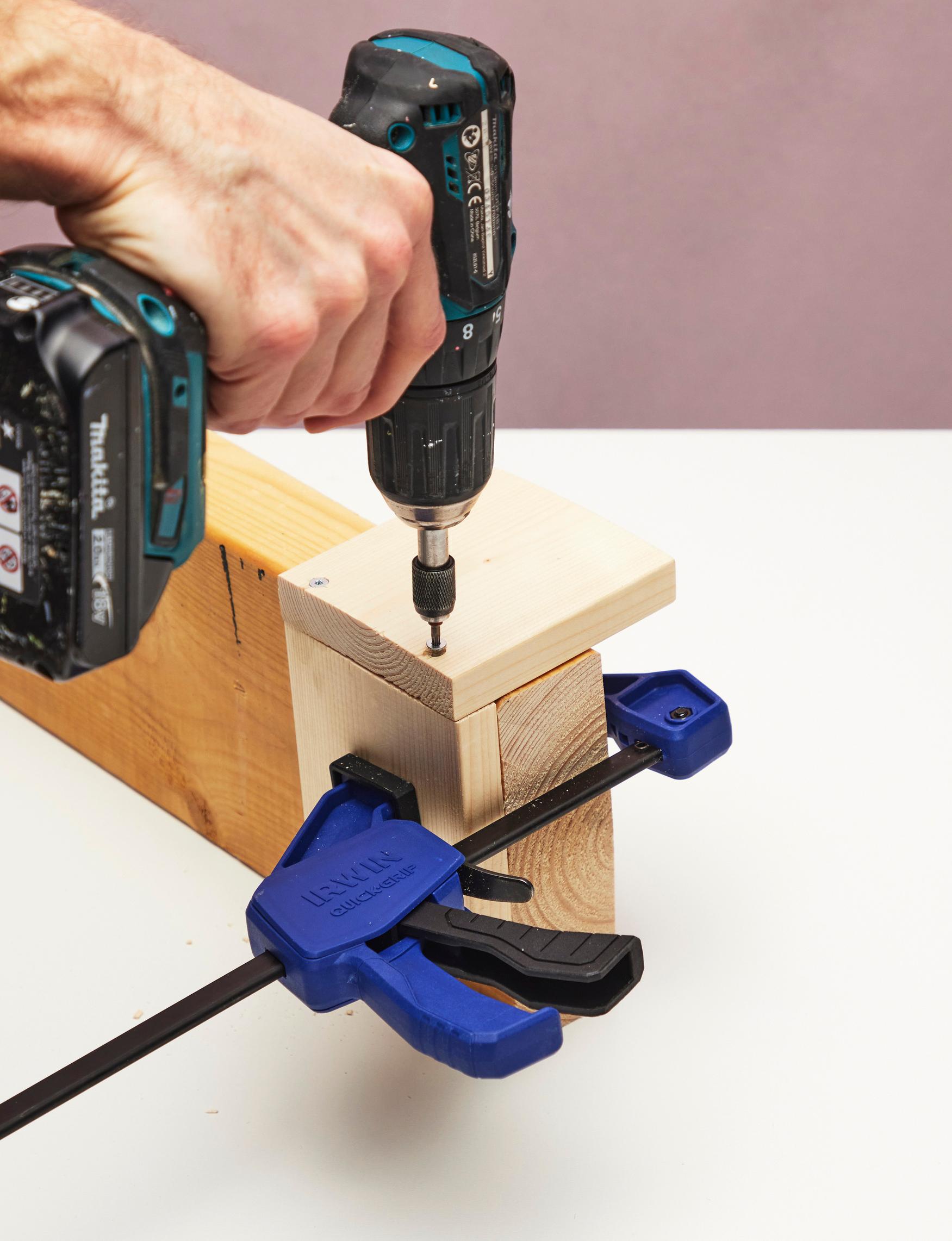 2. Tee pienemmistä kappaleista neljä kulmapalaa yhdistämällä laudat liimalla ja ruuveilla. Voit käyttää ruuvatessa apuna tukipuuta, jolla varmistat kulman suoruuden.