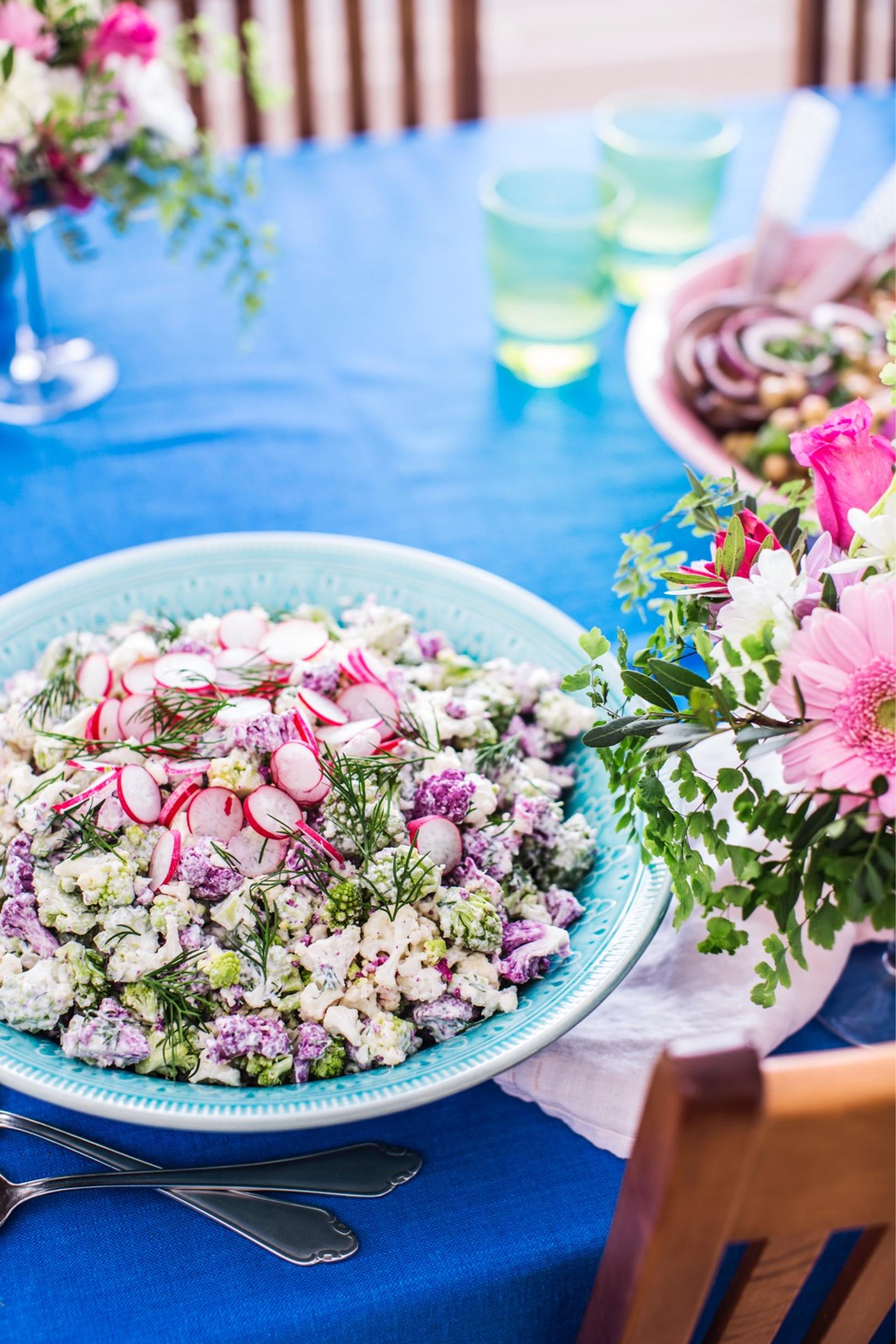 Värikäs kukkakaalisalaatti yhdistää rouskuvat, eriväriset kukkakaalit piparjuurella maustettuun jogurttikastikkeeseen. Kuulostaa herkulliselta, vai mitä? Kokeile myös paahtaa kukkakaaleja, näin niiden maku saa syvyyttä. Paahdettu, Lähi-idän maustein maustettu kukkakaalisalaatti riittää sellaisenaan lounaaksi mutta on myös oiva pari esimerkiksi broilerille.