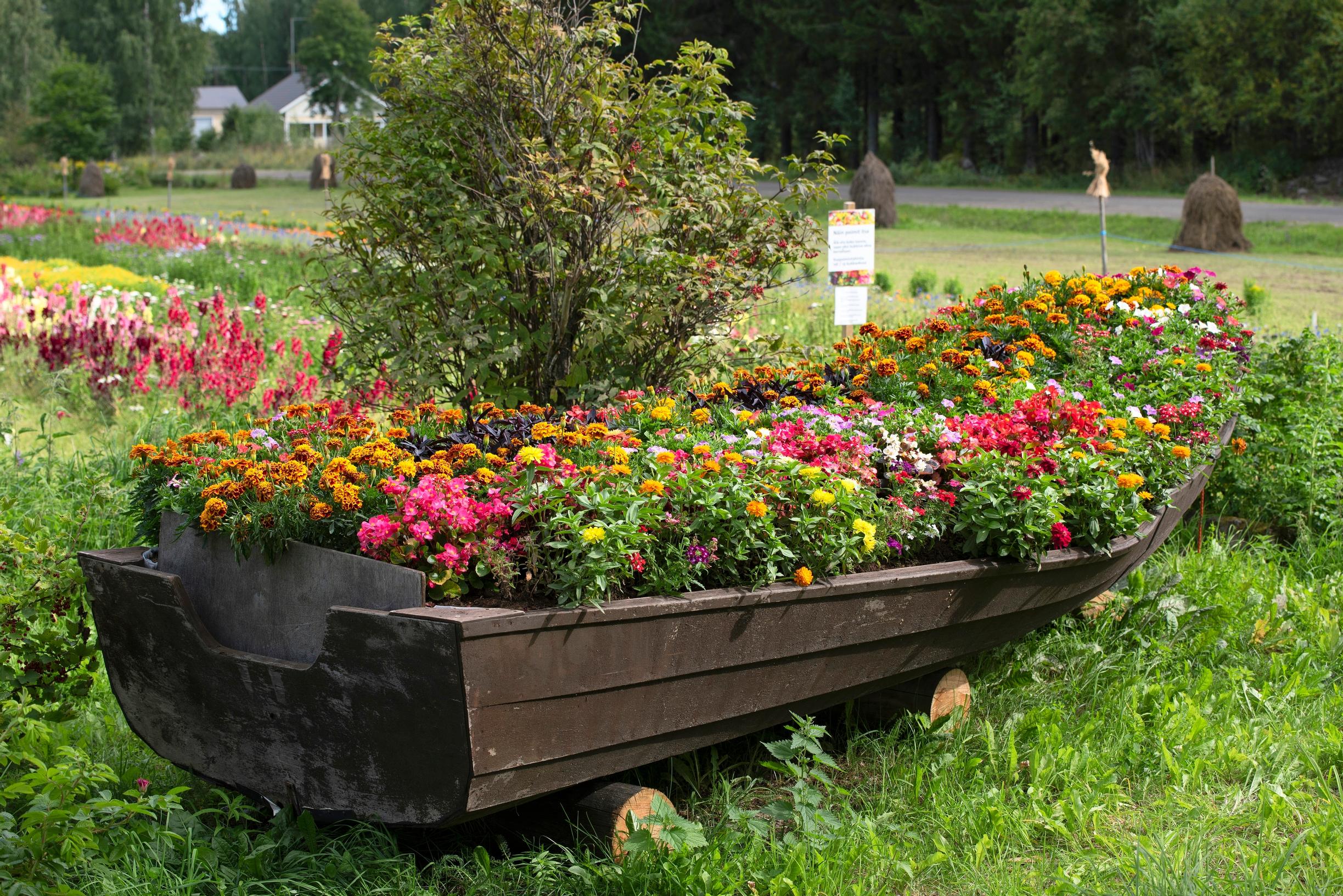 Markku lähtee jatkamaan tulevan Kukkakuhhauksen valmistelua, ja jään kulkemaan pitkin kukkien reunustamia ruohokäytäviä. Voimakastuoksuisten olkikukkien rivi vaihtuu muutaman metrin päässä karkkiväreissä koreileviin leijonankitoihin. Sitten fuksianpunaisia tsinnioita, hirssien keveitä röyhyjä ja niiden jälkeen loppukesän auringon lailla sädehtiviä päivänhattuja.