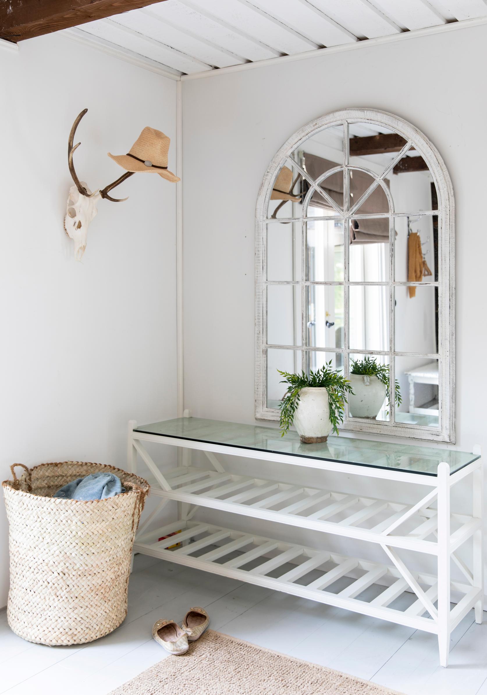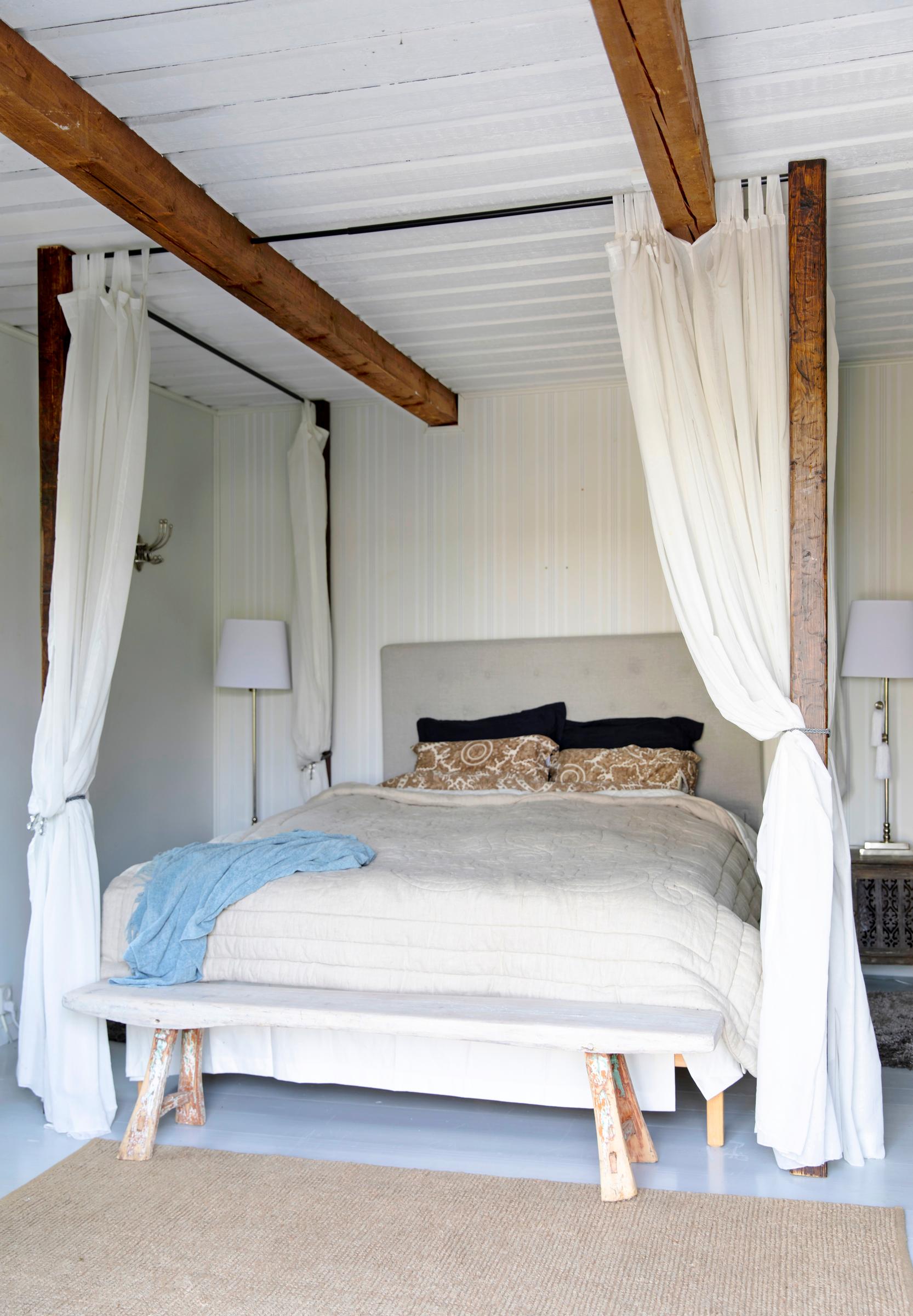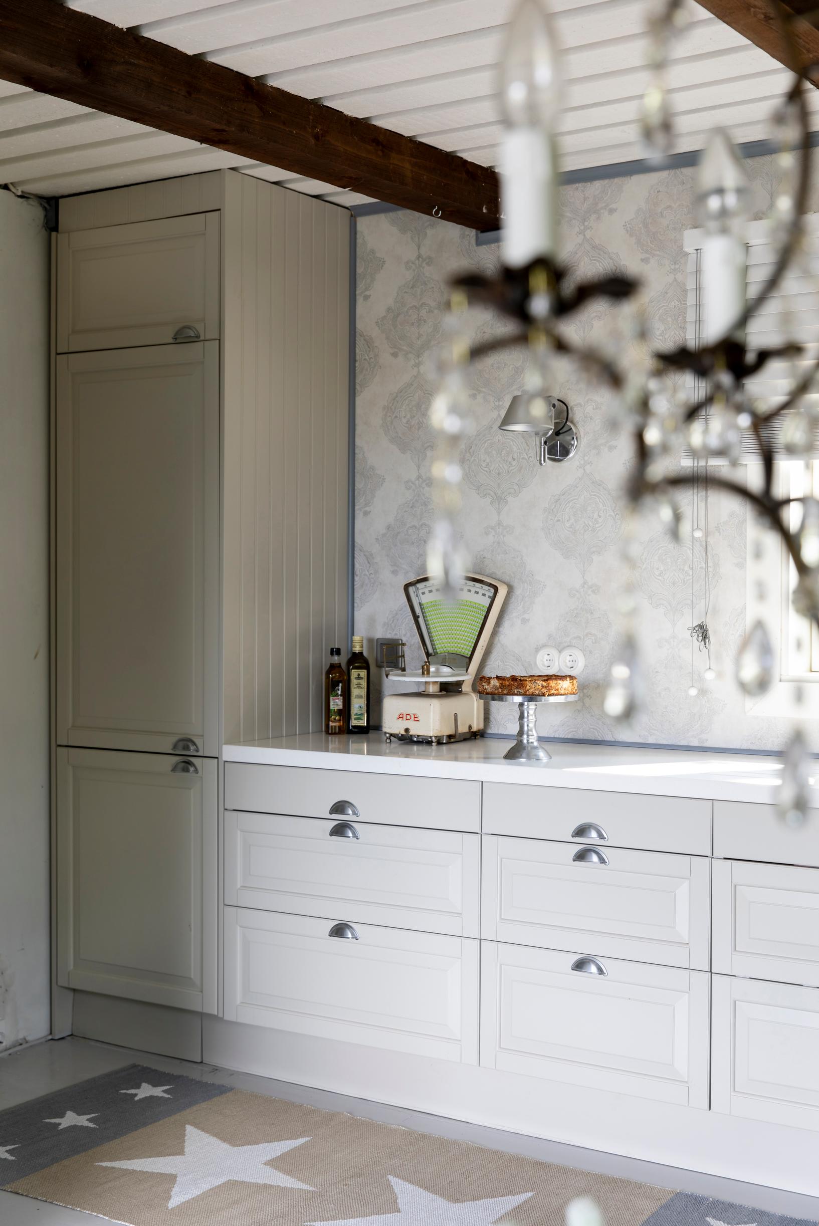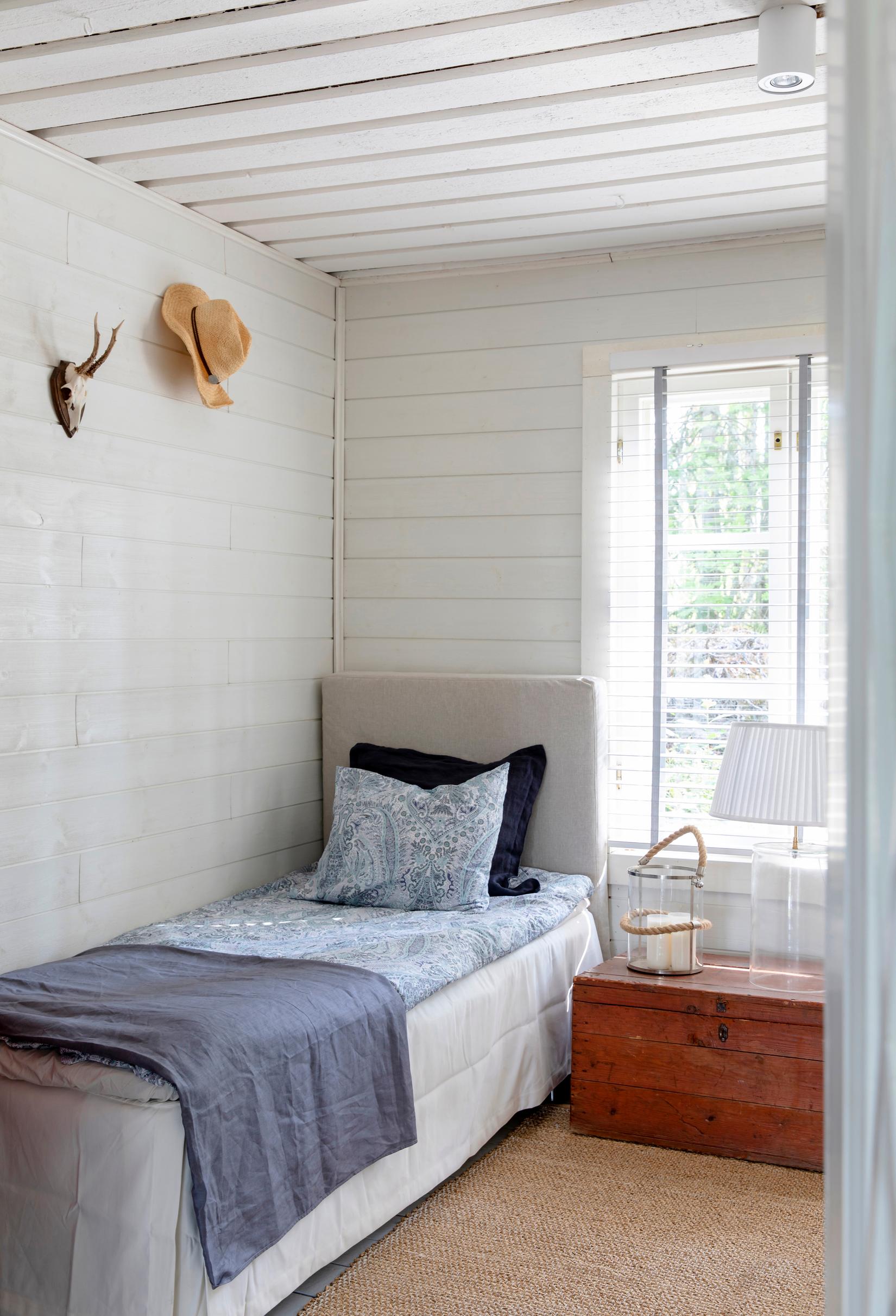 Anne haluaa, että mökin eri vaiheet näkyvät myös sisustuksessa, sillä rakennuksen historia ja tunnelma ovat hänelle tärkeitä. Kokonaisuus on hallittu yhdistelmä glamouria ja menneen ajan tunnelmaa. Musta ulkovuoraus vie torpan kuitenkin tyylillisesti 2000-luvulle ja tuo mieleen vanhat skandinaaviset kalastajamökit.