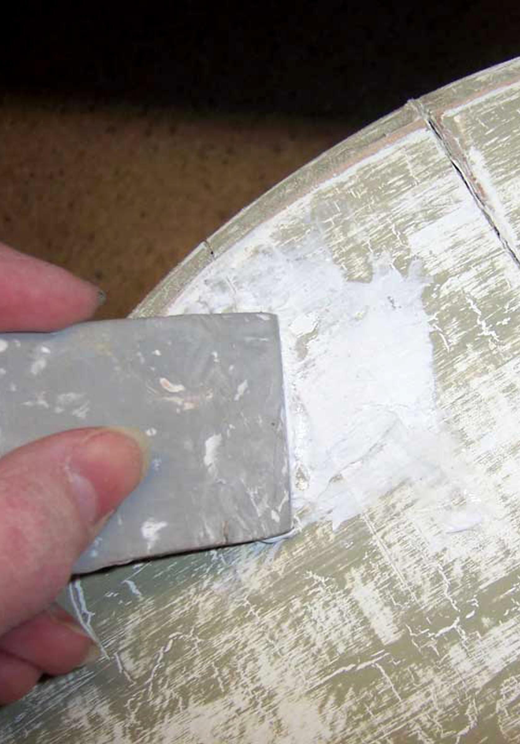 1. Mikäli käsiteltävän esineen pinnassa on epätasaisuuksia – lohkeillutta lakkaa, maalia tai muuta pintakäsittelyä – kaavi siklillä pois kaikki, mikä irtoaa.